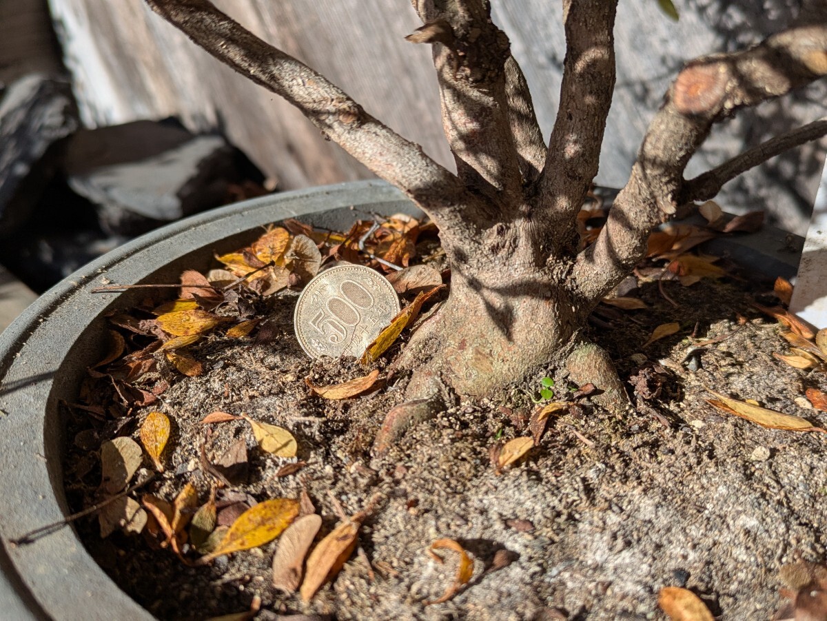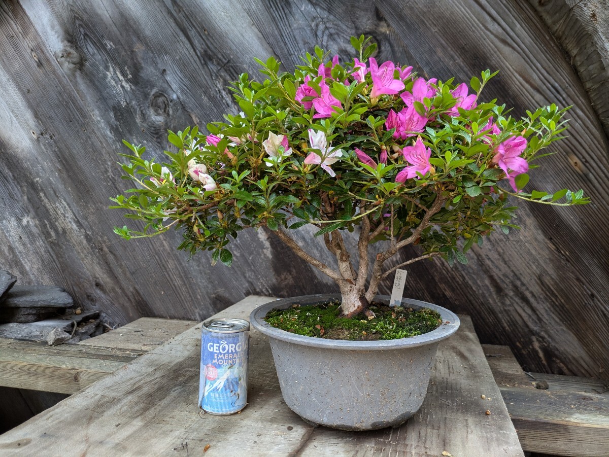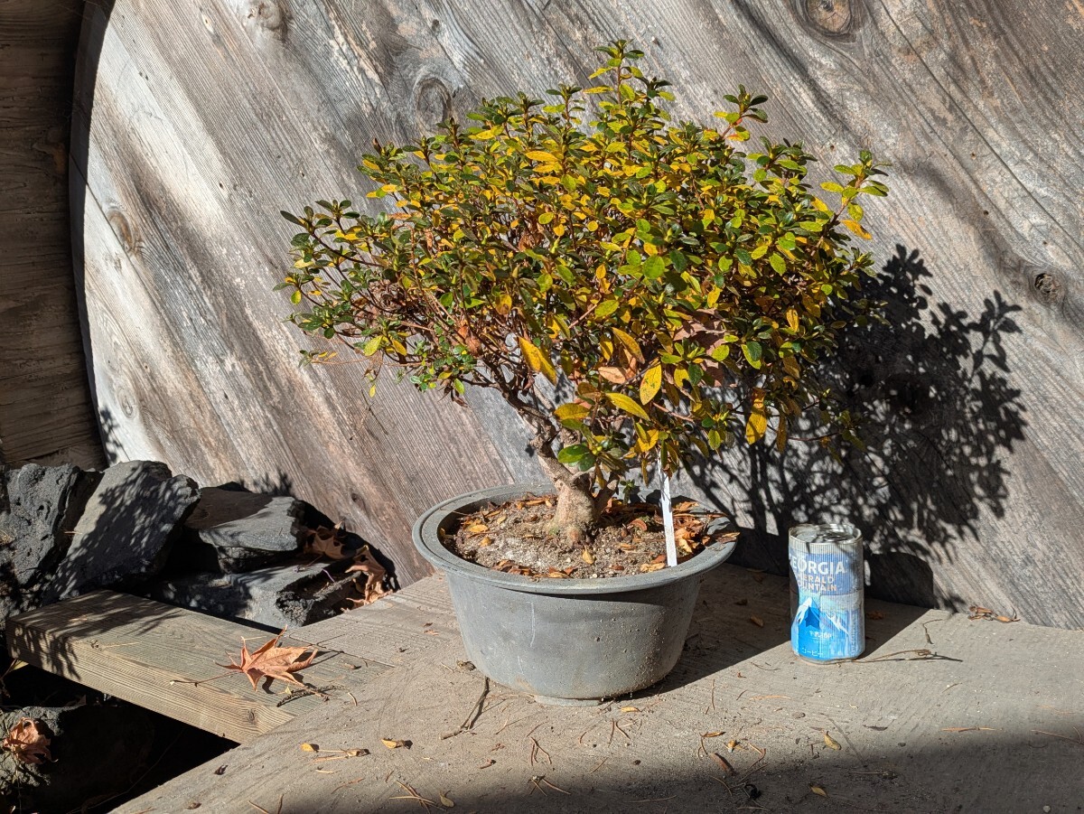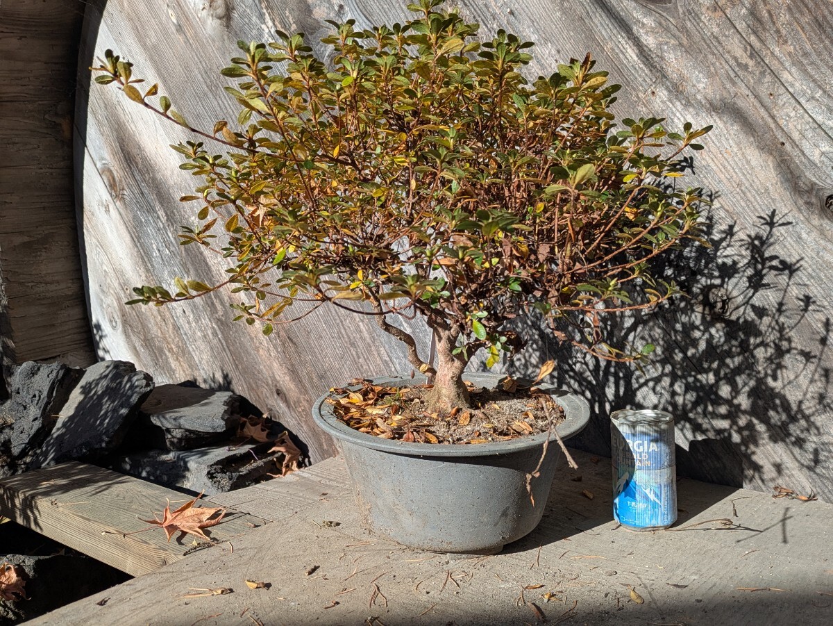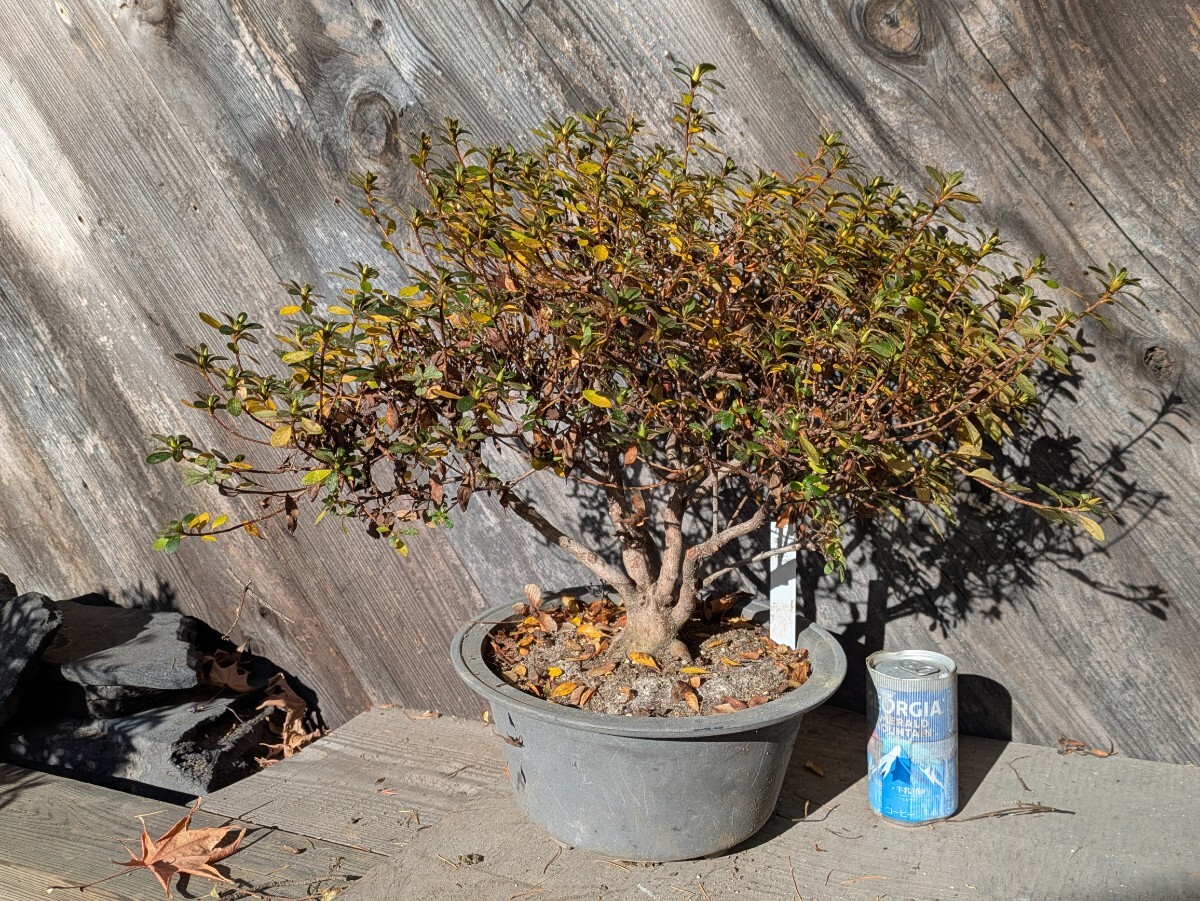 およそは45x35x40cmの枠に入るサイズ。今年は剪定回数が春だけで枝を伸ばしてしまいましたがコンパクトにしてきました。プラ鉢入りで長年で老朽化してます。根本付近からの高さは30cmくらい。発送梱包の際に痛むヶ所が有るかもしれません。佐川急便にて発送する事も有ります。