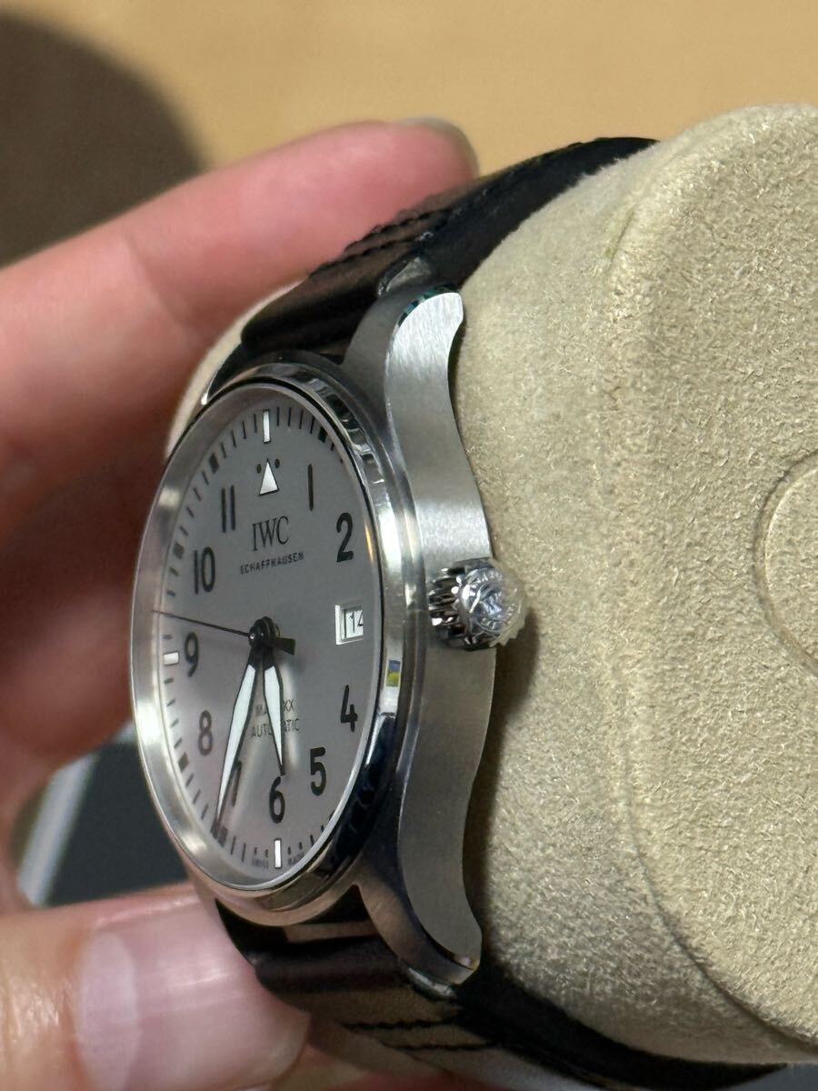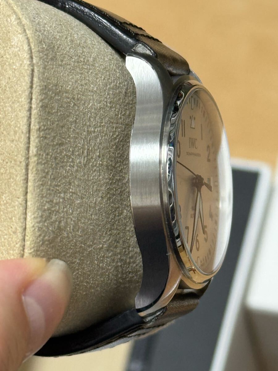 ポリッシュ部に使用でつく反射でやっと見えるスレ。裏蓋に少し傷。尾錠に少々の傷。状態はかなり良いと思いますが、写真でご判断ください。