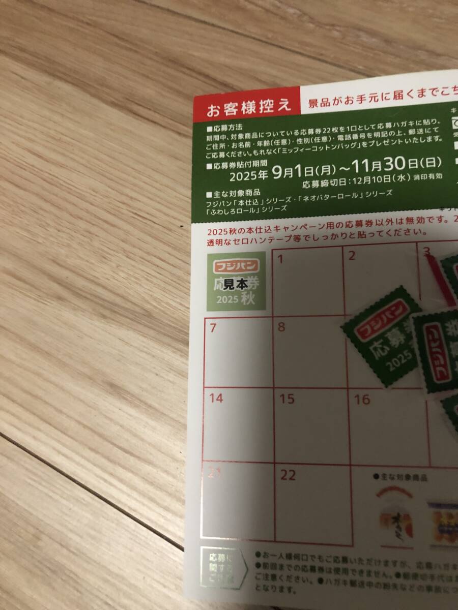 希望の方には台紙に応募券6点分貼付し、半分に折って発送致します。