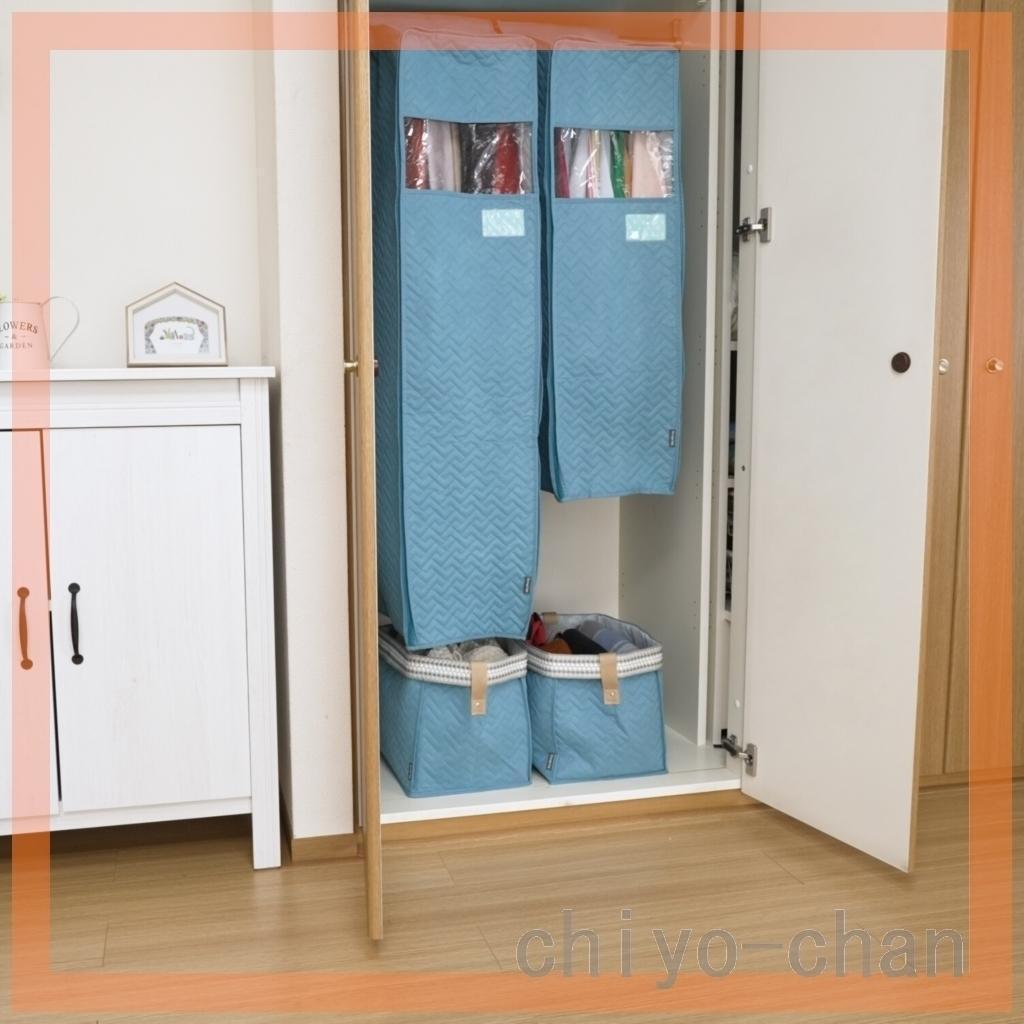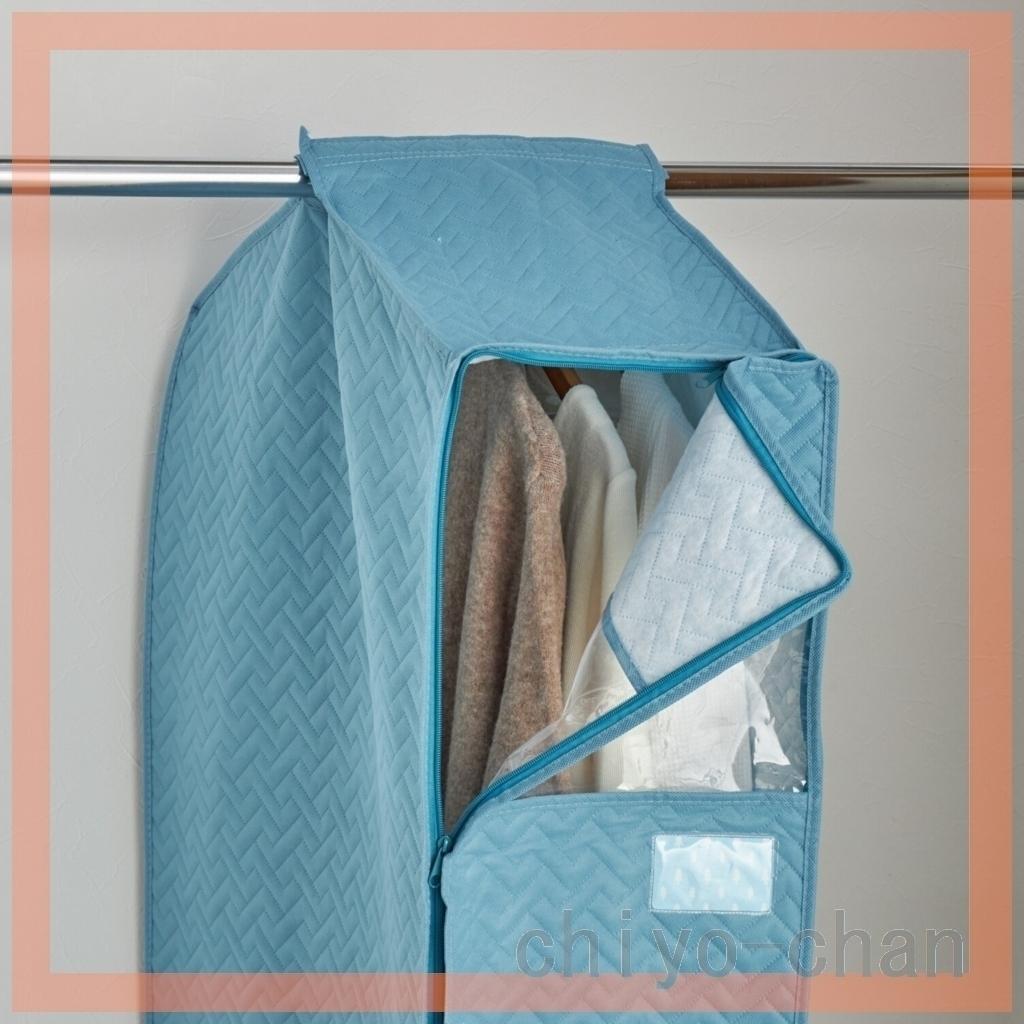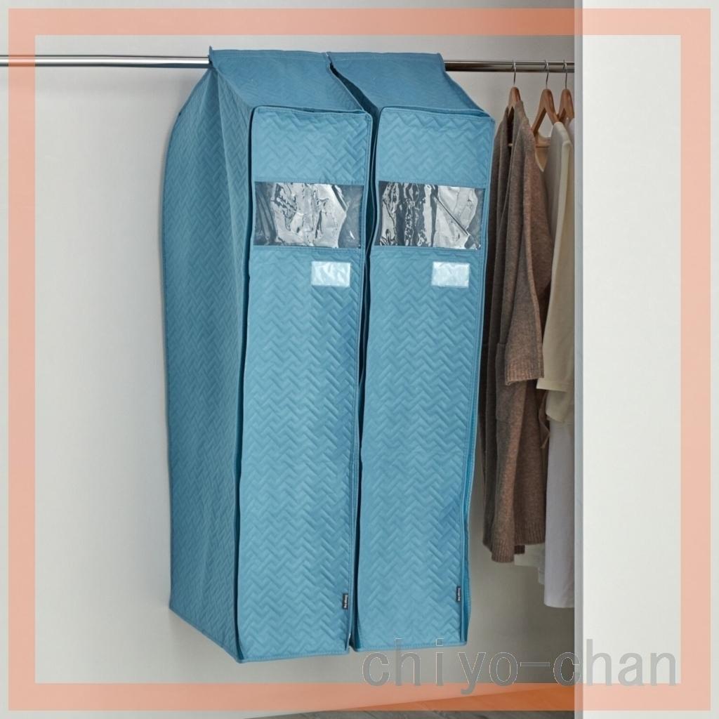 商品:ダブルファスナー仕様簡単まとめて洋服カバー同色2個セットロングターコイズブルー 26-761392002