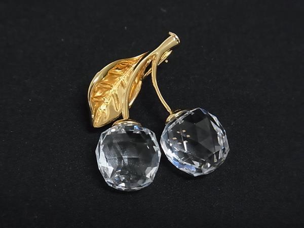 ■新品同様■ SWAROVSKI スワロフスキー クリスタル チェリー さくらんぼ ピンブローチ アクセサリー ゴールド系×クリア DK3180