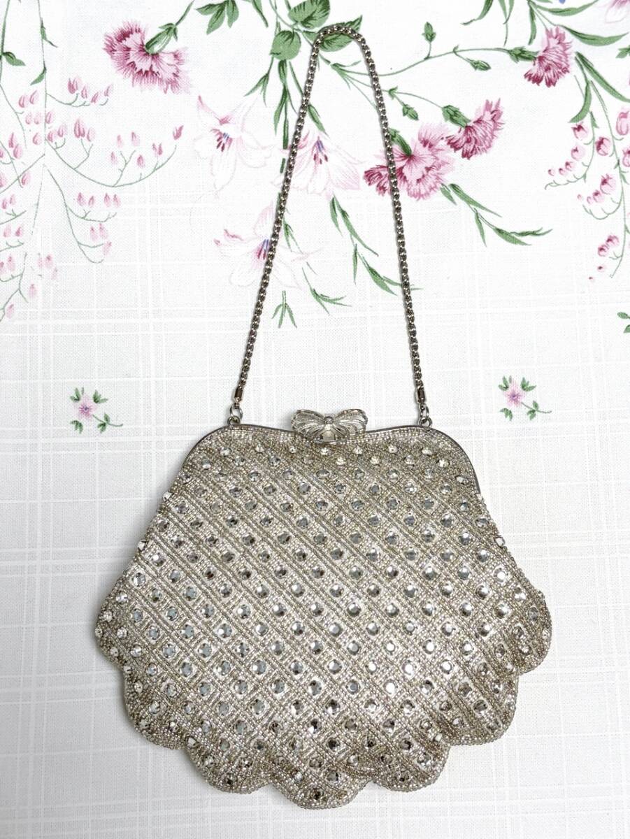 Place Vendome パーティバッグ キラキラ ビーズ刺繍 貝殻風 結婚式 ラインストーン キラキラ