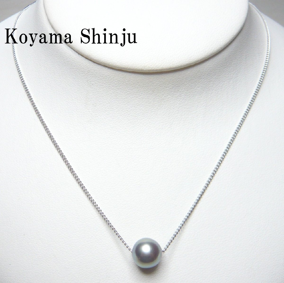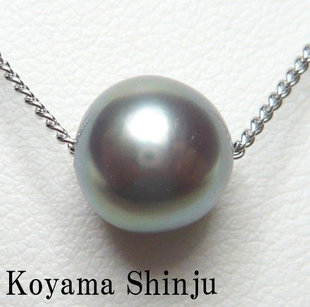 絶品カラー!グレーブルーグリーンピンク系大珠8.8ミリあこや本真珠貫通ペンダントネックレス |