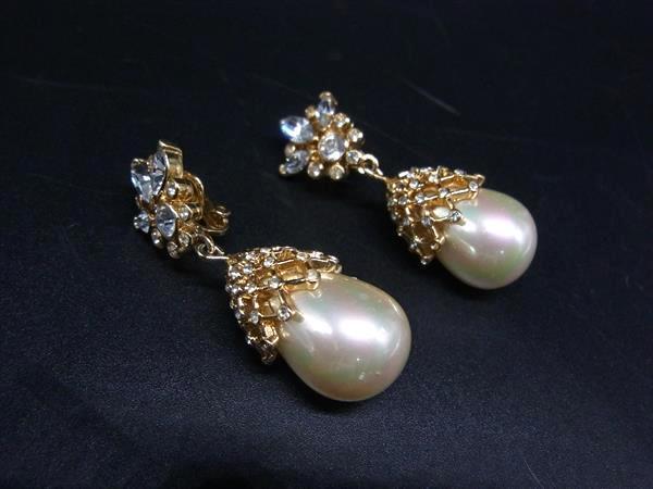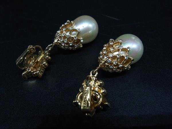 NINA RICCI ニナリッチ ラインストーン パール クリップ式 イヤリング アクセサリー レディース ゴールド系 DK4684