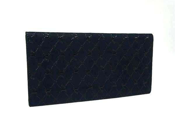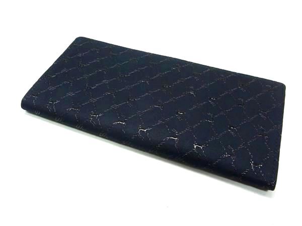 ■美品■ INDEN-YA 印傳屋 インデンヤ 鹿革 漆塗り 二つ折り 長財布 ウォレット 札入れ ネイビー系 DJ8997