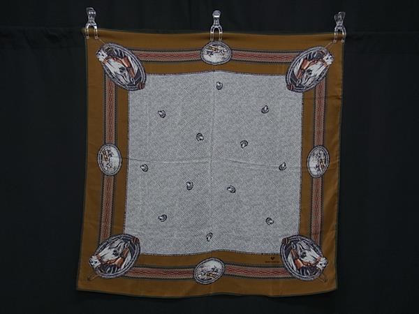 ■美品■ MARIO VALENTINO マリオ ヴァレンティノ シルク100% ホース 馬 スカーフ ストール ショール ブラウン系 DK3285