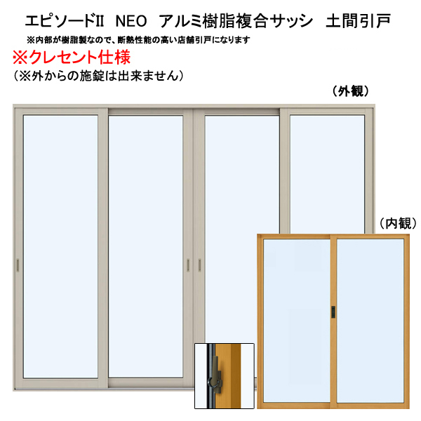 | 商品名 | アルミ樹脂複合サッシ YKK エピソードNEO 店舗引戸 W2600×H2030 (25620) 複層 4枚建 クレセント仕様 |