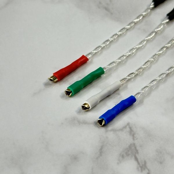 レコードヘッドシェル・カートリッジ用 5N純銀リード線 (30AWG Pure Silver litz wire) - 金メッキコネクター付き 50mm