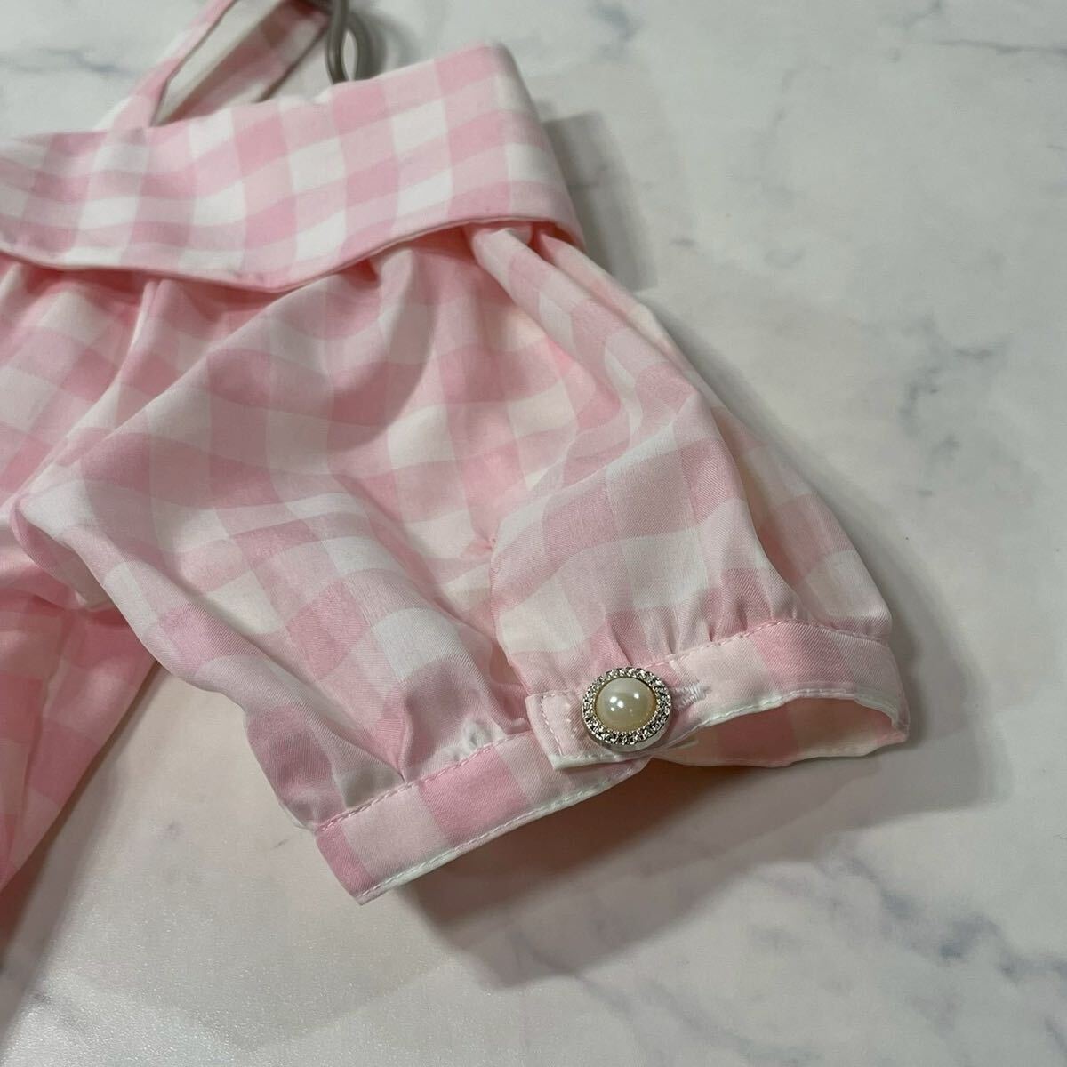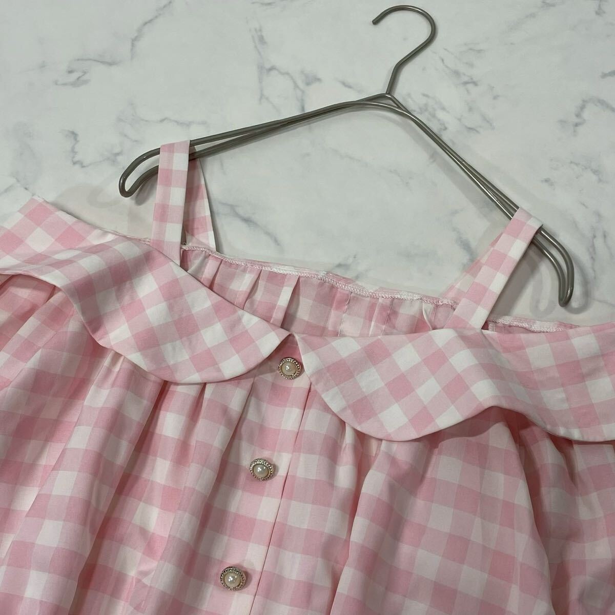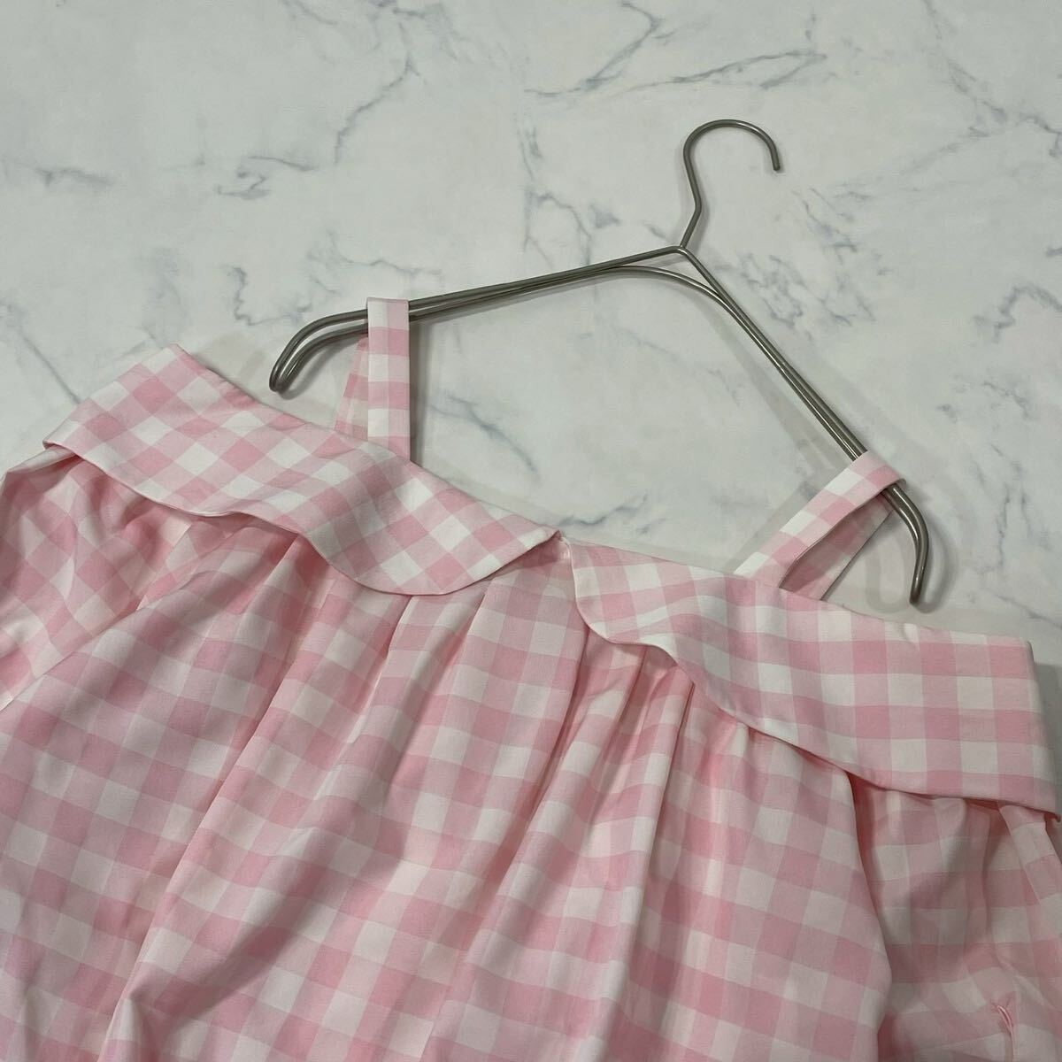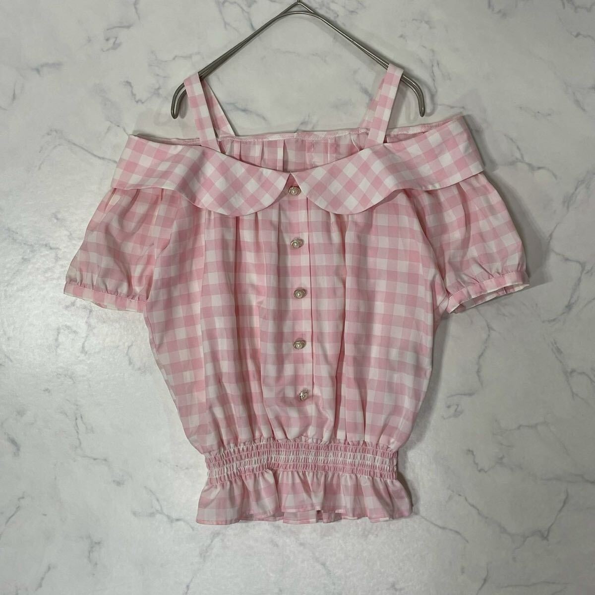 チェック ギャザー タック シャーリング 飾りリボン ボタン ショールカラー ラグラン 肩紐 半袖 ブラウス
