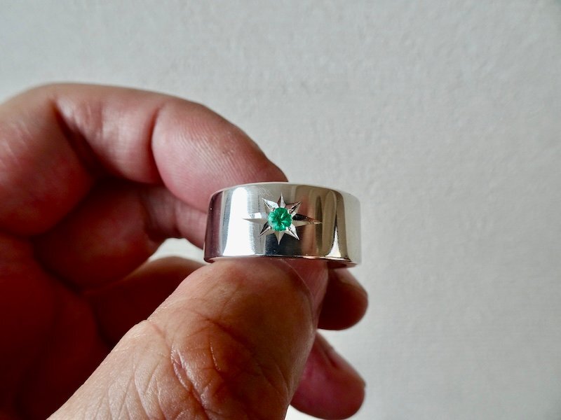 | ■ ■ 商品名: 『一つ星3mmエメラルド、幅1cm、平打リング』 ■ ■ |