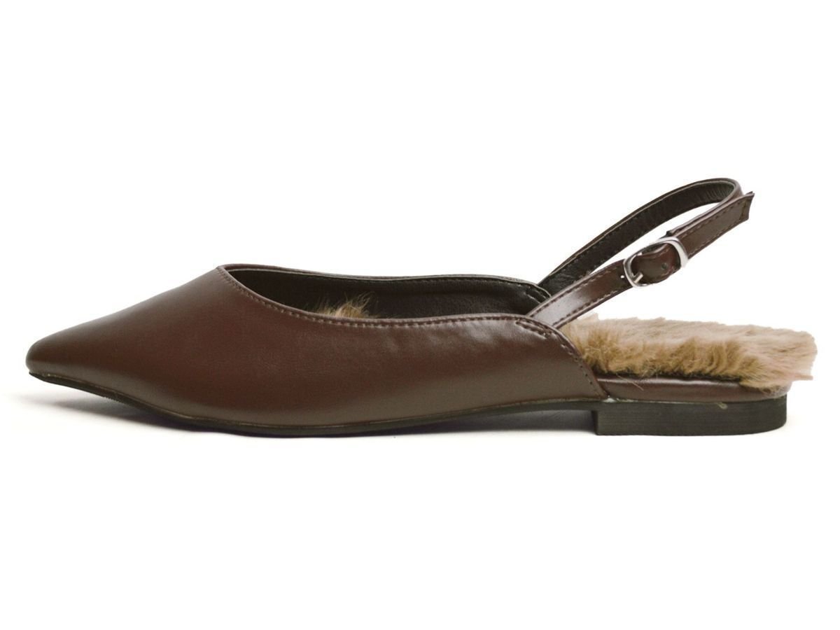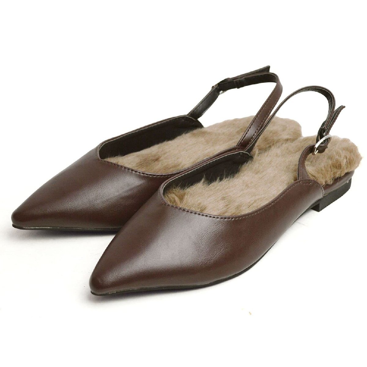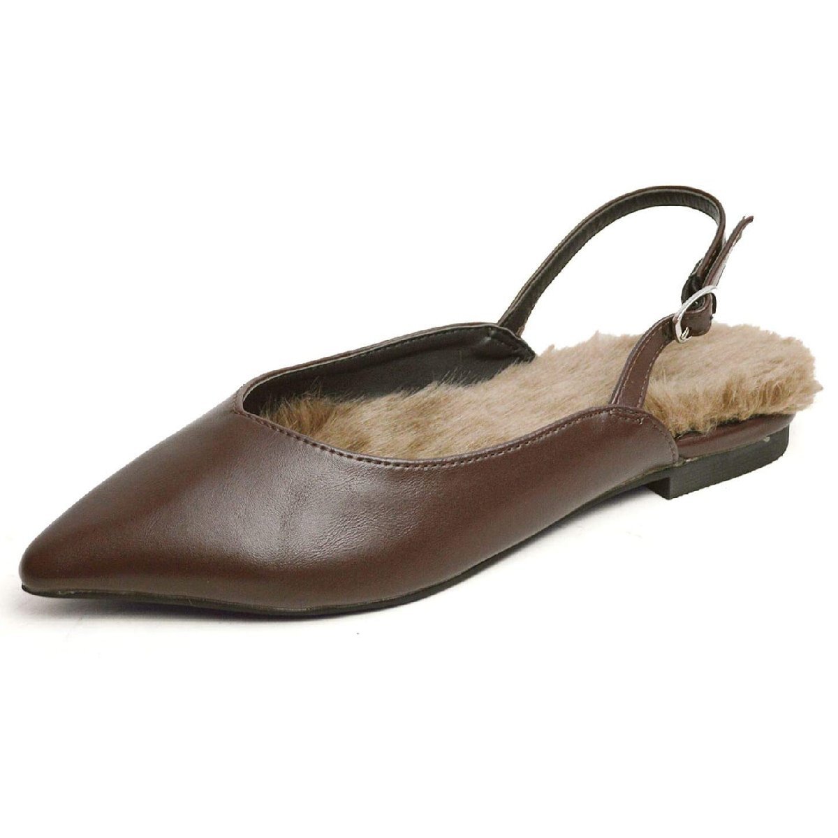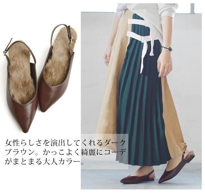 レディース フラット パンプス ふわふわ ファー ストラップ付 ポインテッドトゥ サンダル ぺたんこ カジュアル 大人 靴 9380