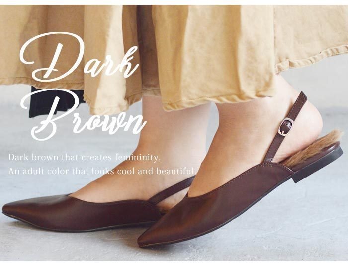 在庫処分■新品【23~23.5cm】レディース フラット パンプス ファー ストラップ付 ポインテッドトゥ サンダル カジュアル 靴【エコ配送】