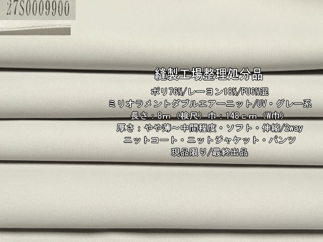 | ポリ/レーヨン/PU ミリオラメントダブルエアーニットUV グレー8m | |