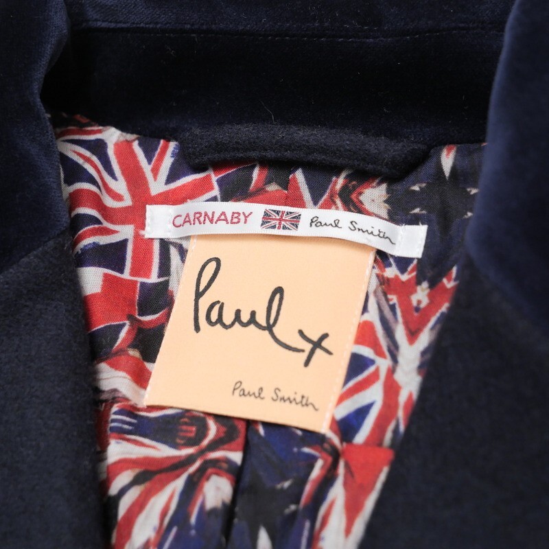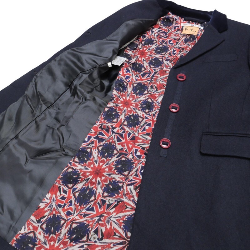 | MI3527〇ポールスミス Paul Smith CARNABY*ウール*ベルベット襟*裏ユニオンジャック柄/総柄*チェスターコート*サイズ40*ネイビー | |||