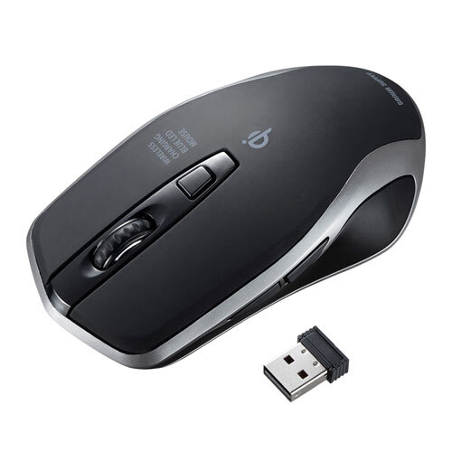 ※配送の送り主はサンワサプライ(株)と記載されています。沖縄・離島配送不可となります。 当店は正規販売代理店です。 特長 Qiと専用ケーブルで充電できる充電式ワイヤレスマウスです。 ※充電時間は約2時間です。(Qi・充電ケーブル) 赤色の光学式より感度の高い青色LEDを搭載し光沢感のあるデスク面でもマウスパッドなしでスムーズな操作が可能です。 ※鏡など光を反射する素材や、ガラスなど透明な素材の上でご使用になると、カーソルがスムーズに動かない場合があります。また規則正しいパターンの上ではトラッキング能力が低下する場合があります。 マウスポインタを動かさず、手元のサイドボタンにも「戻る・進む」の2ボタンを搭載しており、Webブラウザで操作をスピーディに行えます。 ※Apple Macシリーズでは使用できません。 用途に合わせてカーソル速度が変更できる、カーソル速度切替機能付きです。800・1200・1600の3段階の切替えができます。 ノートパソコンに差したままで、持ち運びや保管ができる小型レシーバーです。 メーカー保証期間180日 ※当店発注日からになります。 気をつけておりますが、タイミングによっては在庫切れの場合があります。 ケーブルを気にせず使えるワイヤレスタイプです。 電波障害に強い2.4GHzデジタル帯で、通信範囲が半径10mの広範囲で安定したデータ通信が可能です。 ※電波干渉のない場合に限る。 ※透明ガラスなどの一部の表面では動作しにくい場合があります。 レシーバーはマウス本体裏面に差し込むだけの簡単収納です。 不使用時の電池消耗を防止する電源ON・OFFスイッチ付きです。 仕様