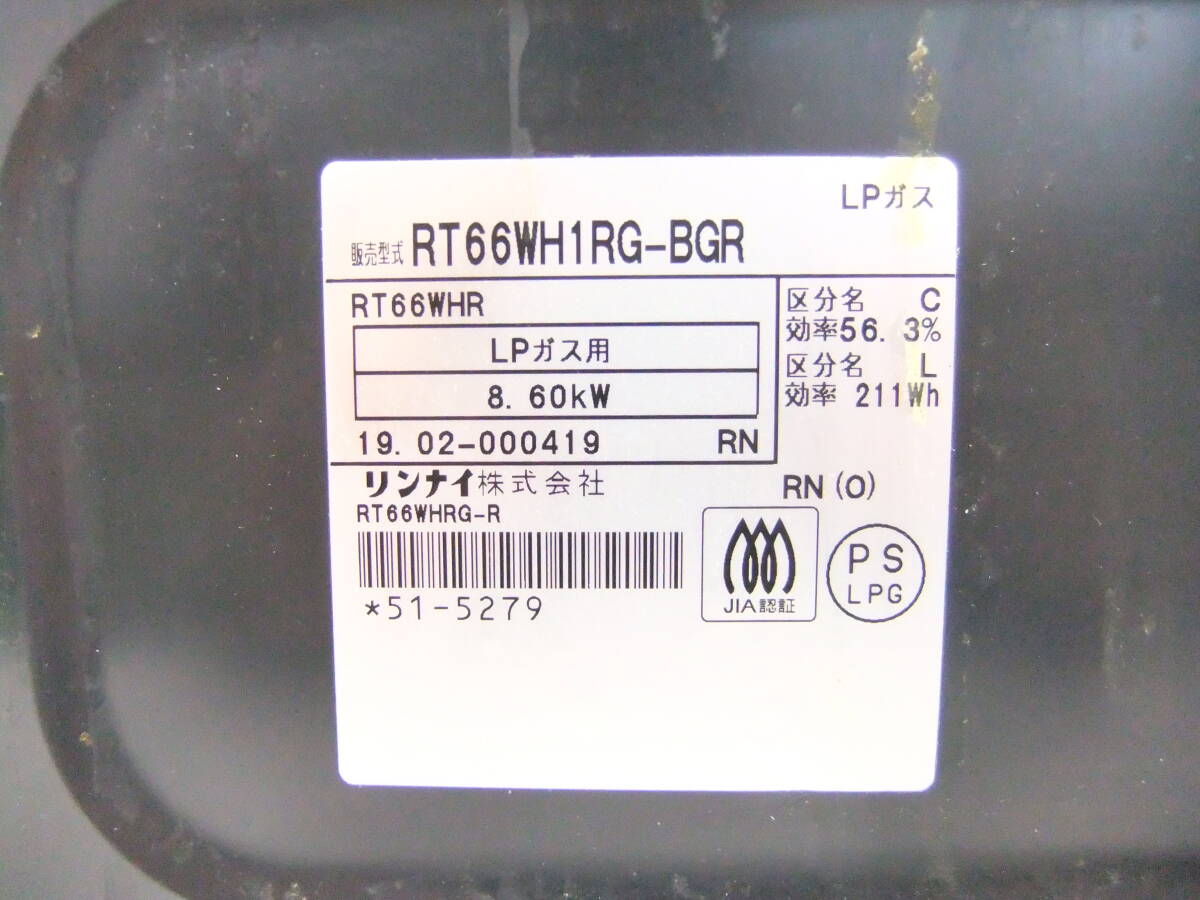 Rinnai リンナイ ガステーブル RT66WH1RG-BGR LPガス用 2019年製 グリル付 【中古】111806SO