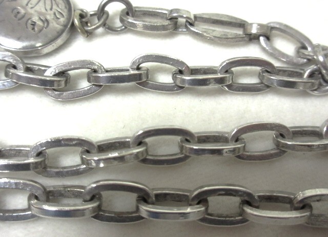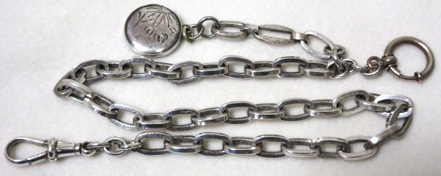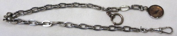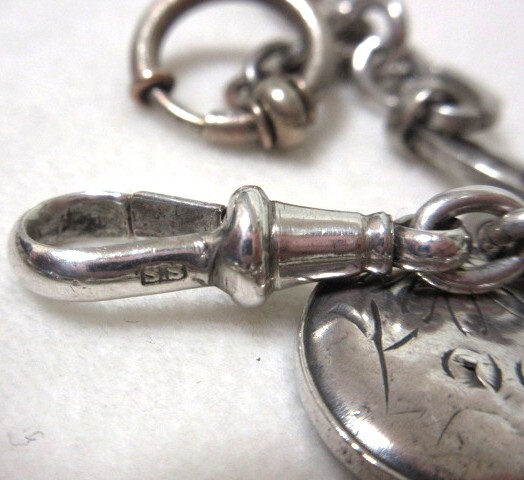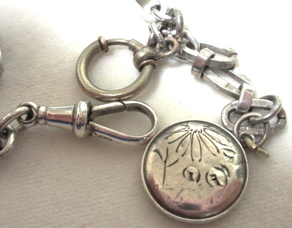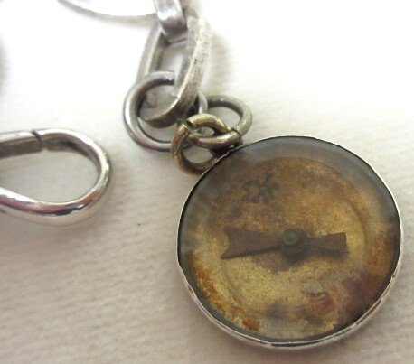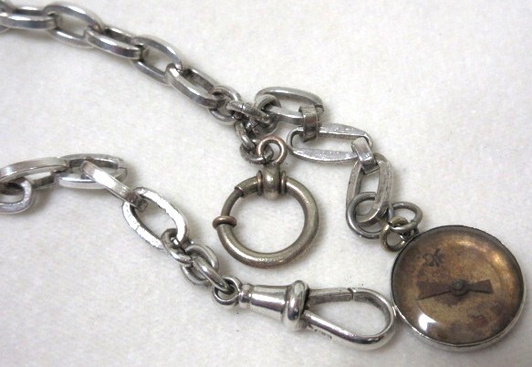 銀製太提げ鎖 / フォブチェーン / 銀製方位磁針付き ◆ 懐中時計 / 紳士小物 / アクセサリー小物 / 装飾品 ◆ 経年品 / 当時物