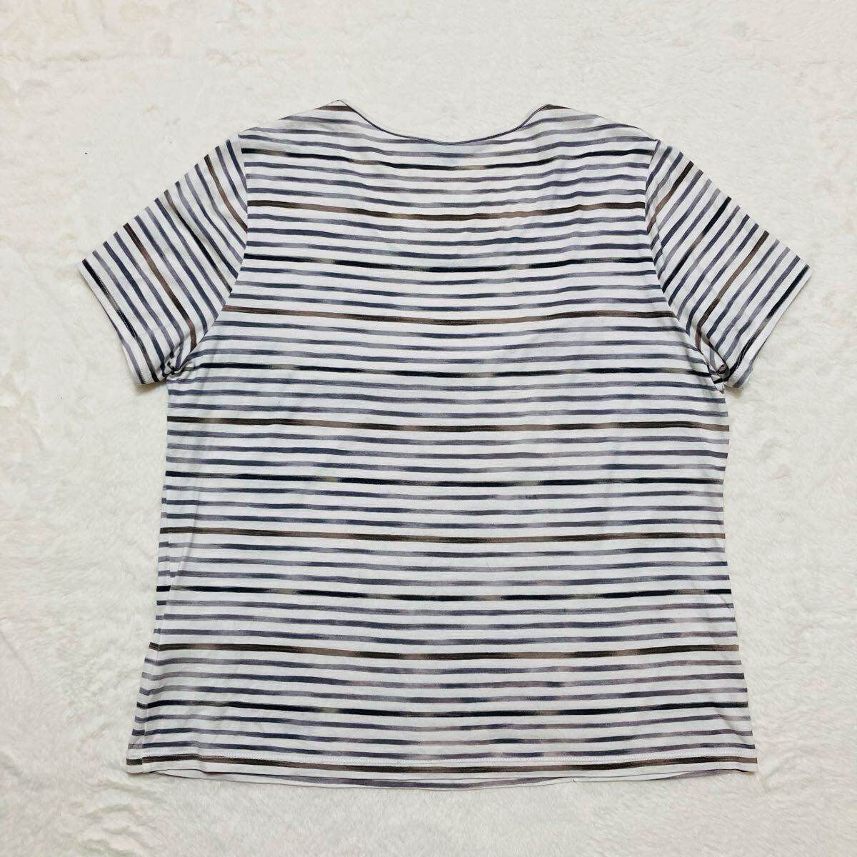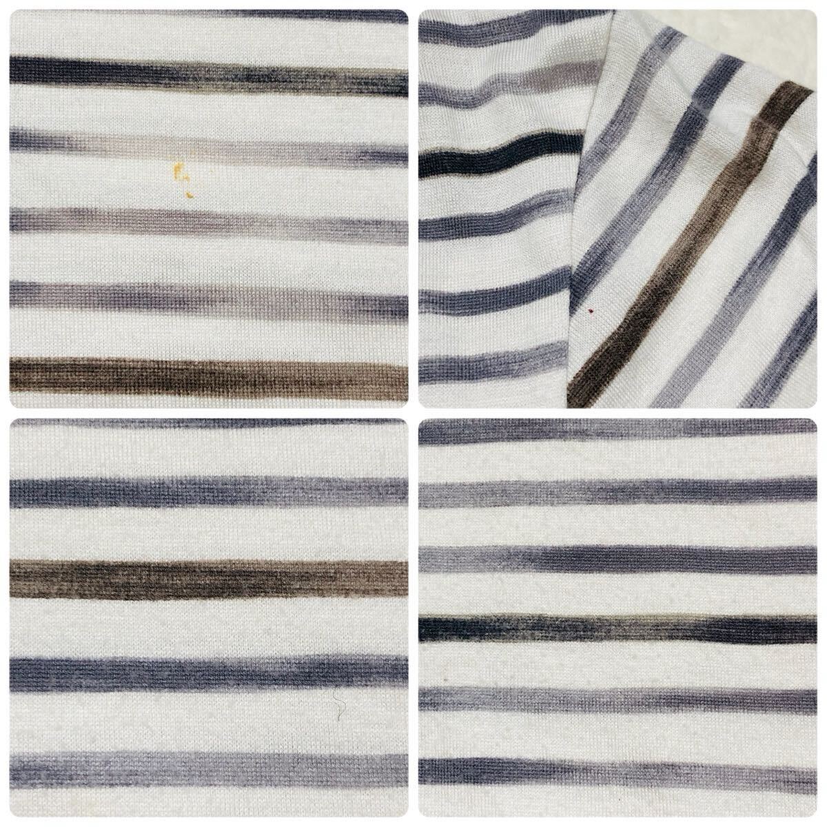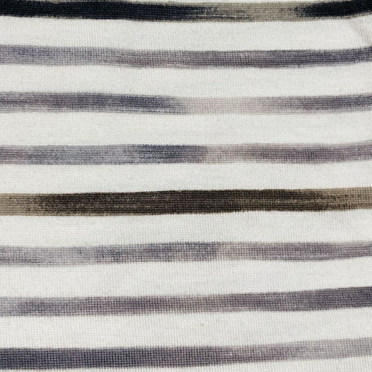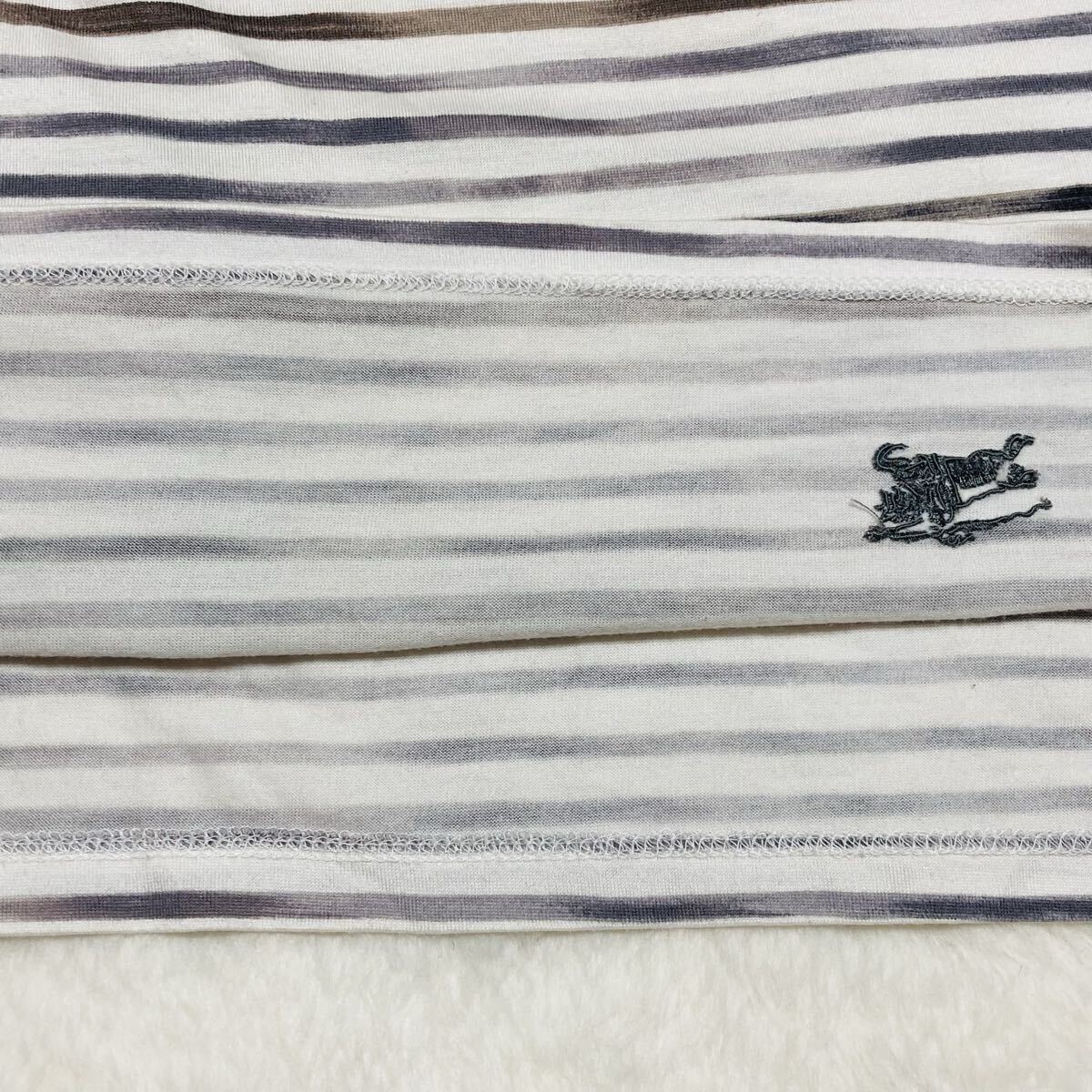 BURBERRY LONDON バーバリーロンドン 半袖Tシャツ size5 ボーダー ワンポイント刺繍ロゴ 三陽商会 日本製 グレー×ブラウン×ホワイト