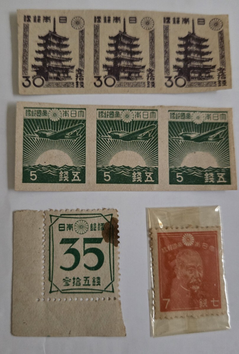 五重塔と戦闘機は糊無し、35銭と東郷平八郎は糊有りです。