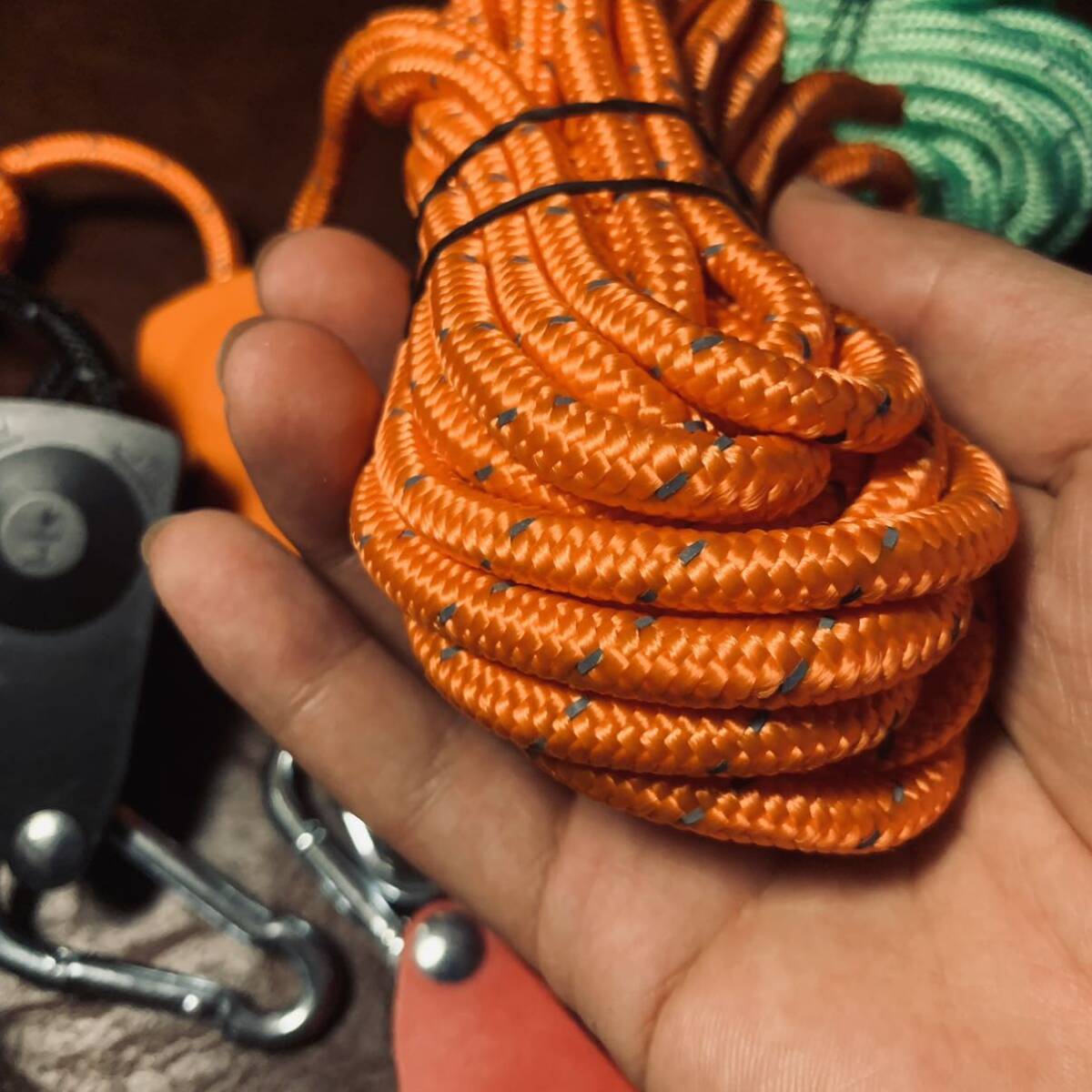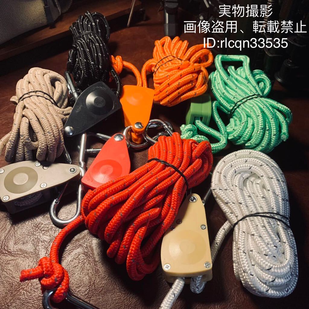 新品キャンプ用 超高品質 タープテント6mmロープ パラコード ガイロープ カラビナ 6点セット 反射材入り 長5m 簡単設営 アウトドア野外登山