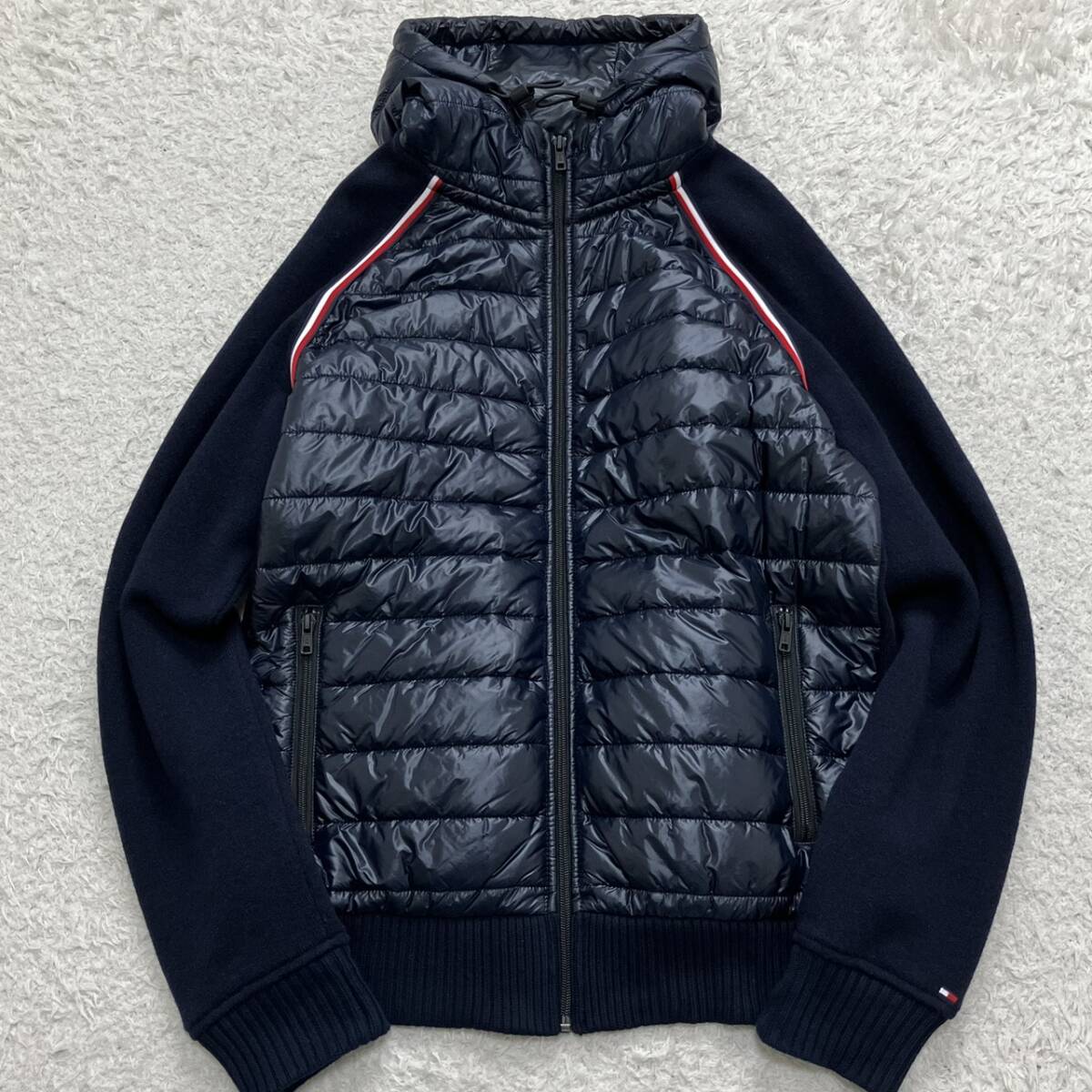 現行!未使用級!定番M!トミーヒルフィガー TOMMY HILFIGER ダウンジャケット ニット 切り替え 中綿 ブルゾン アウター 刺繍 メンズ ビジネス
