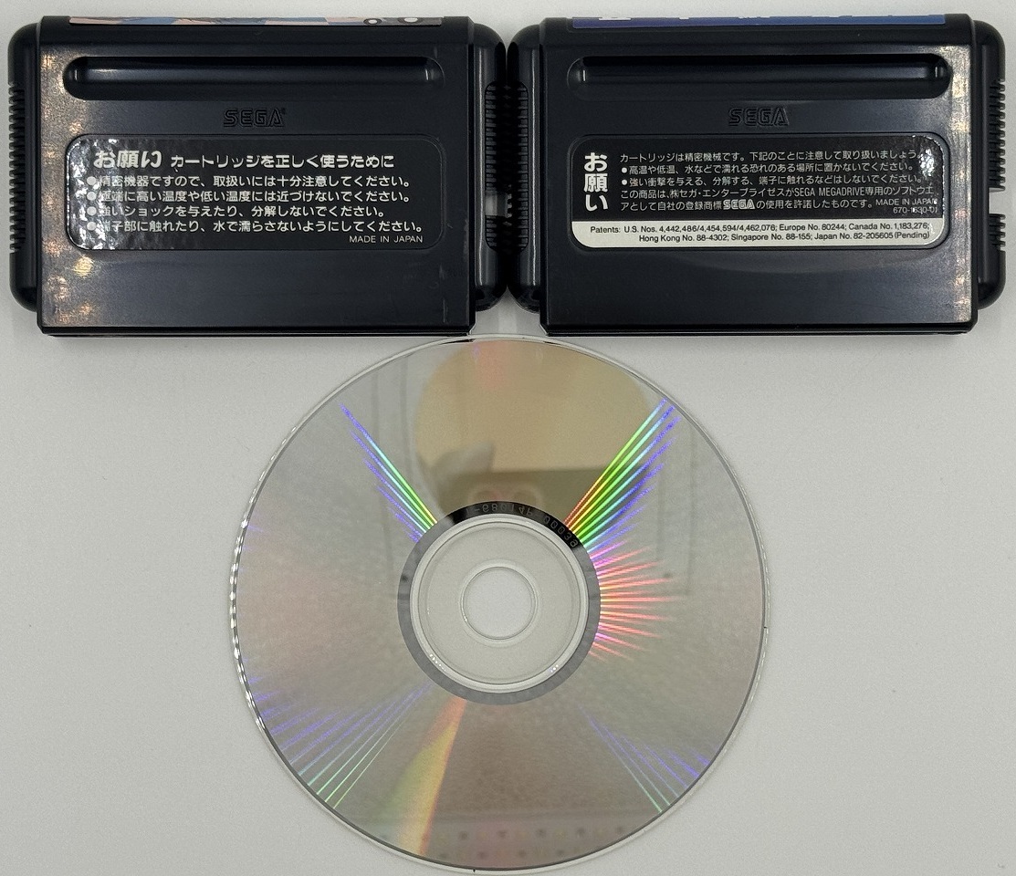 メガ・CD版については、CDドライブが手元に無いため動作チェックは行っておりませんが、ディスク盤面の状態は良好です。