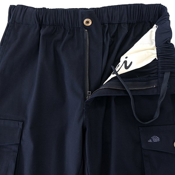 【CHUBEI】 毎日の装いを心から楽しむことをコンセプトに、機能的で遊び心を加えたSTANDARDアイテムを提案。タウンカジュアルとアウトドアカジュアルをミックスし、ありとあらゆるシーンで活用頂けるライフスタイルブランド。 適度な厚みで密度があるコットンツイル素材なので、シーズンレスで着用できるカーゴパンツです。 表地ストレッチに加えて、ウエストゴムのイージー仕様による快適な穿き心地が魅力。 シルエットは細すぎず太すぎないベーシックなシルエットを採用し、幅広いシーン・コーディネートに合わせられます。 左カーゴポケット部分にトレードマークのハリネズミ刺繍、オリジナルボタン、ポケット裏地にビッグロゴプリントが入るなど、細部にまでこだわったアイテムです。 【デザイン】 ・ノータック ・ジッパーフライ ・ストレートシルエット ・ウエストにゴムとドローコード入り |