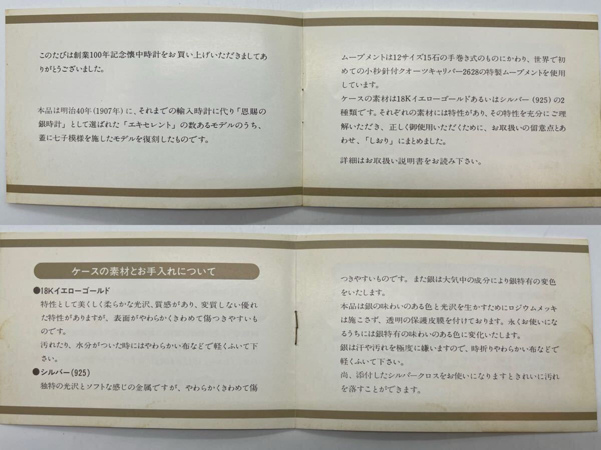 こちらは SEIKO 創業100周年記念 懐中時計 になります。