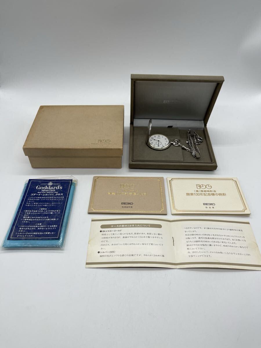 SEIKO 懐中時計 創業100周年記念モデル Silver925 刻印付 チェーン付 付属品完備 希少 レア 1円スタート
