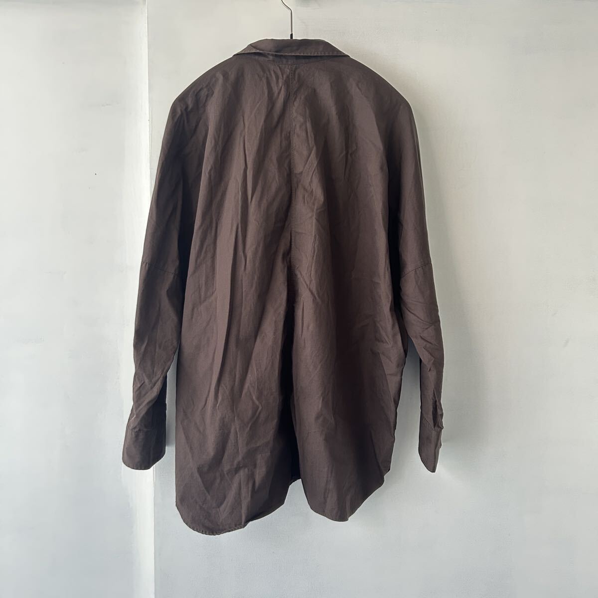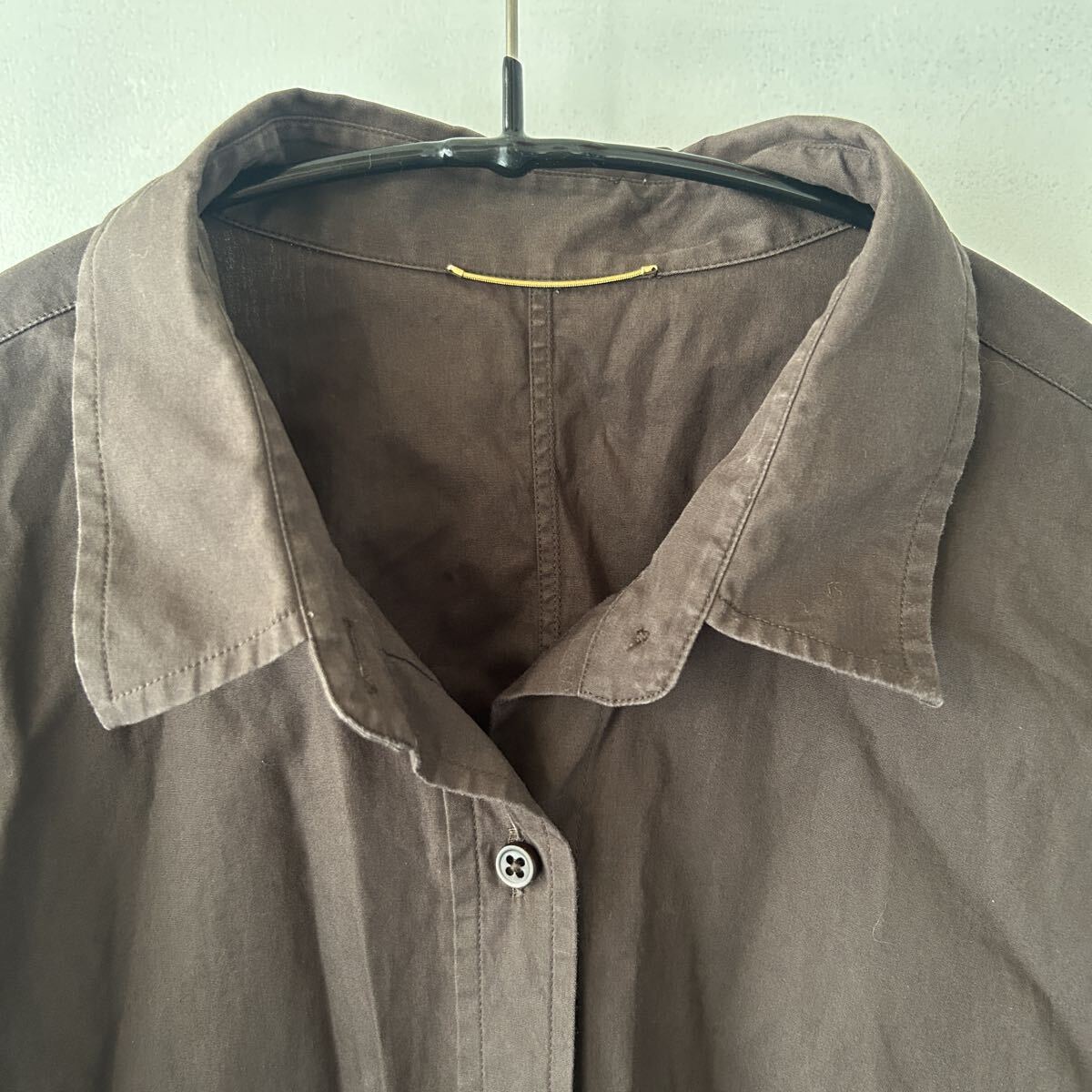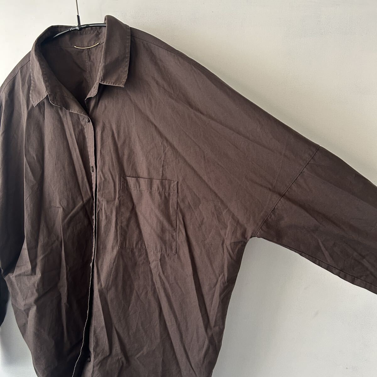 体が泳ぐサイズ感が女性らしさを演出するシルエット。 ドロップショルダーのデザインが、腕を華奢に見せてくれるデザインです。 襟を抜いて、ラフに着るのがおすすめです。 程よく硬めな素材が、シルエットを立体的に演出。 薄手のコットンがシーズンレスで活躍する風合い。 凛とした印象が女性らしさをプラスしてくれる1着です。