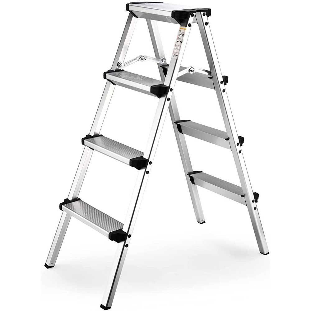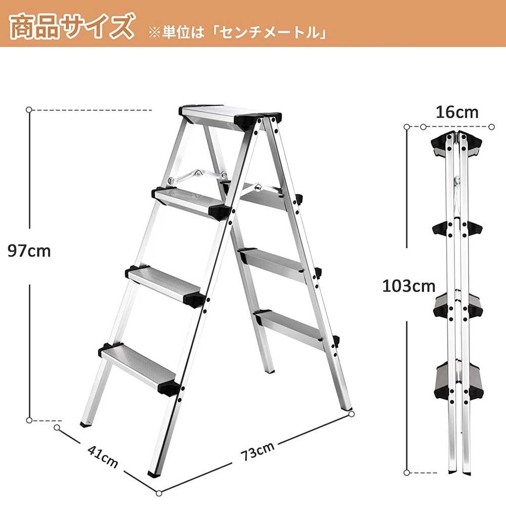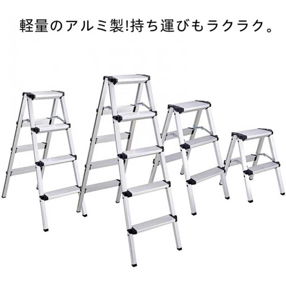 脚立4段 梯子 アルミ 脚立 折りたたみ ミニ 軽量 きゃたつ 踏み台 脚立 耐荷重150KG 滑り止め付き ステップ台(シルバー4段)