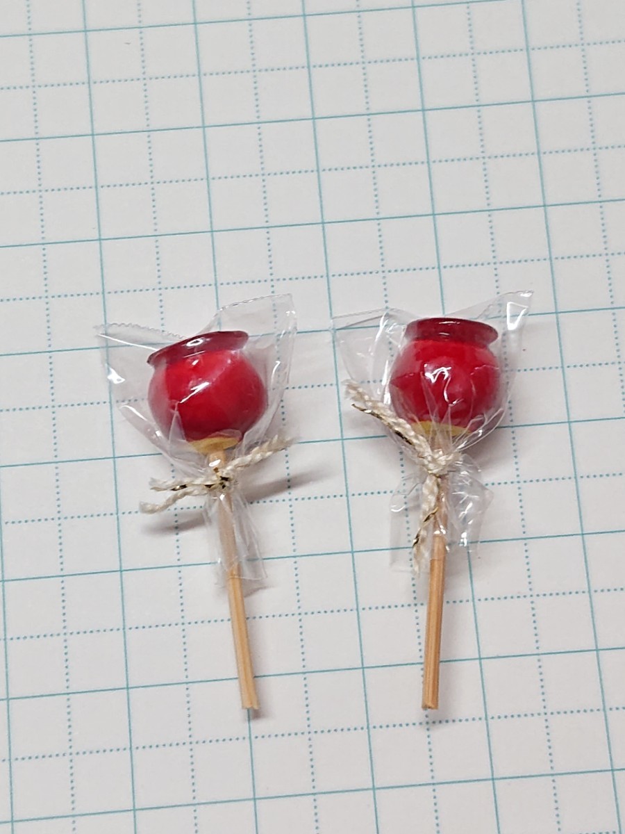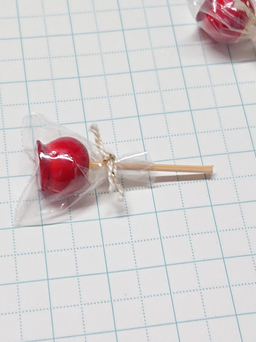 樹脂粘土などで作ったミニチュアりんご飴です。