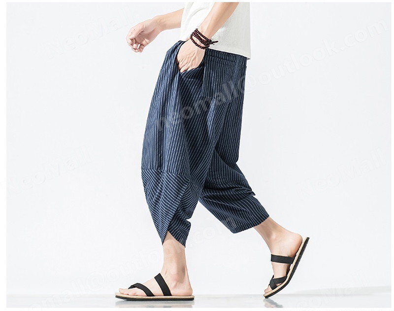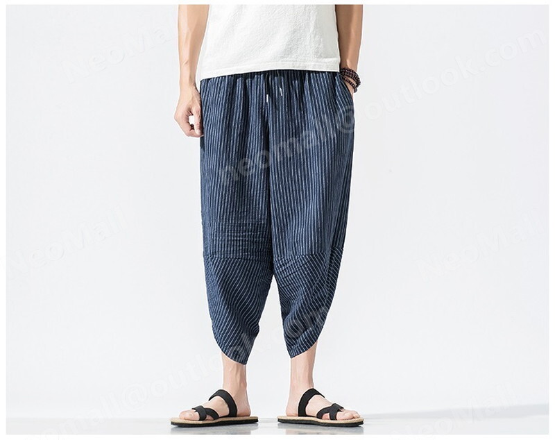 お買い得☆メンズ サルエルパンツ ブルー L カジュアル ヒップホップ 7分丈 スウェット 無地 ポケット付 オールシーズン【063】