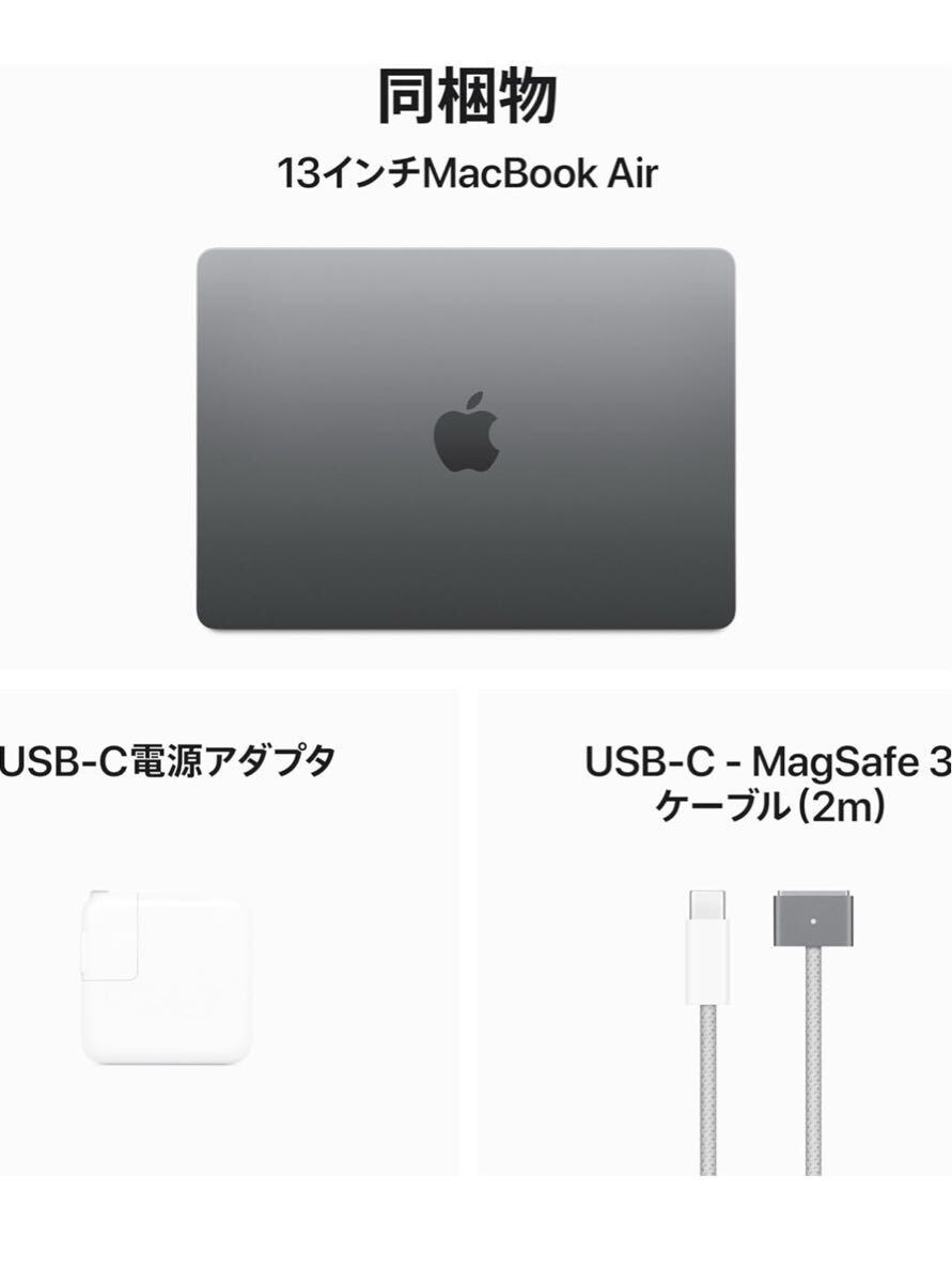 【Apple純正カスタマイズモデル】Apple 2024 MacBook Air M3チップ搭載13インチノートブック: 13.6インチLiquid Retina ディスプレイ, 16GB ユニファイドメモリ, 256GB SSD ストレージ, バッ クライトキーボード, 1080p FaceTime HD カメラ, Touch ID。iPhone や iPad との連係 機能, スペースグレイ