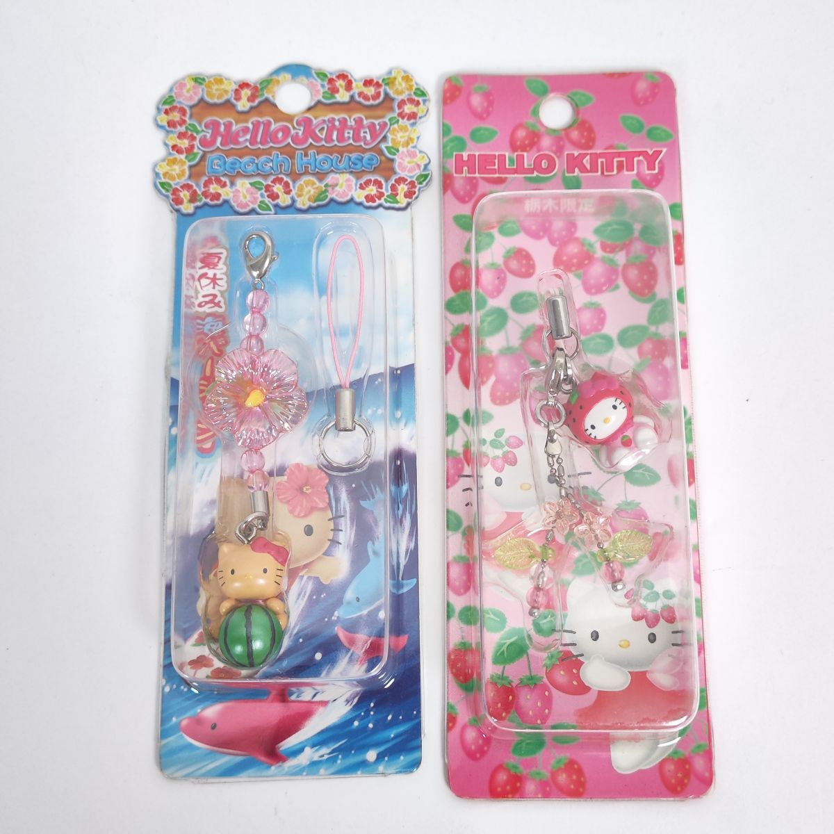 | 商品名 | ハローキティ ストラップ 夏休み 海バージョン スイカ 2004 / 栃木限定 いちごバージョン 苺 2002 根付け ご当地 Hello Kitty サンリオ |