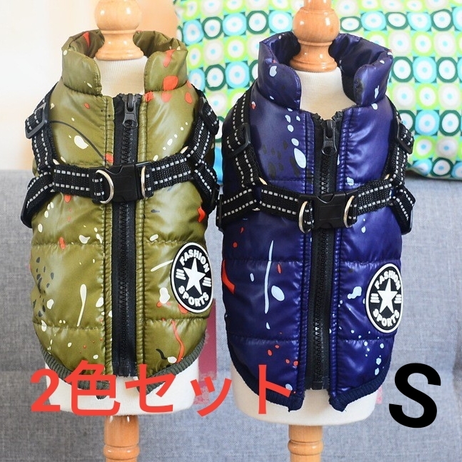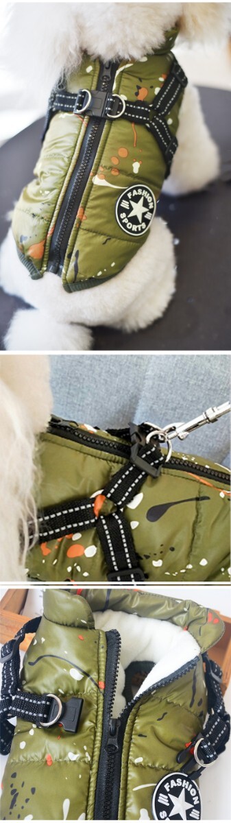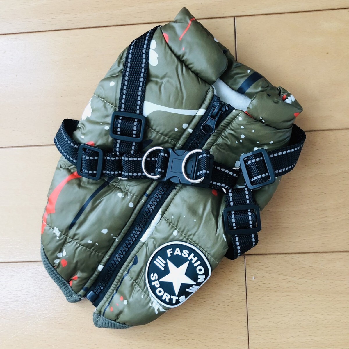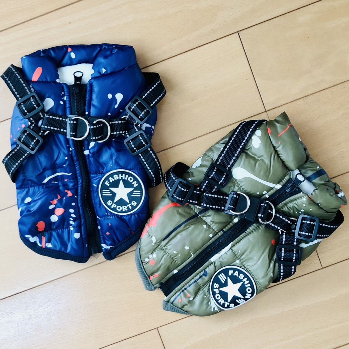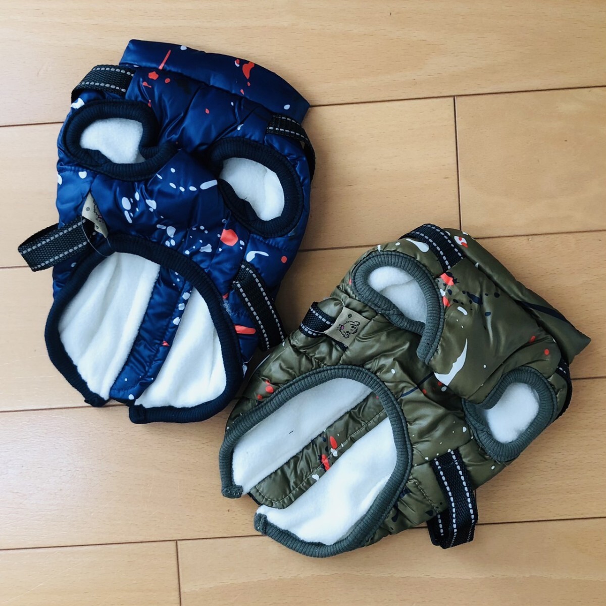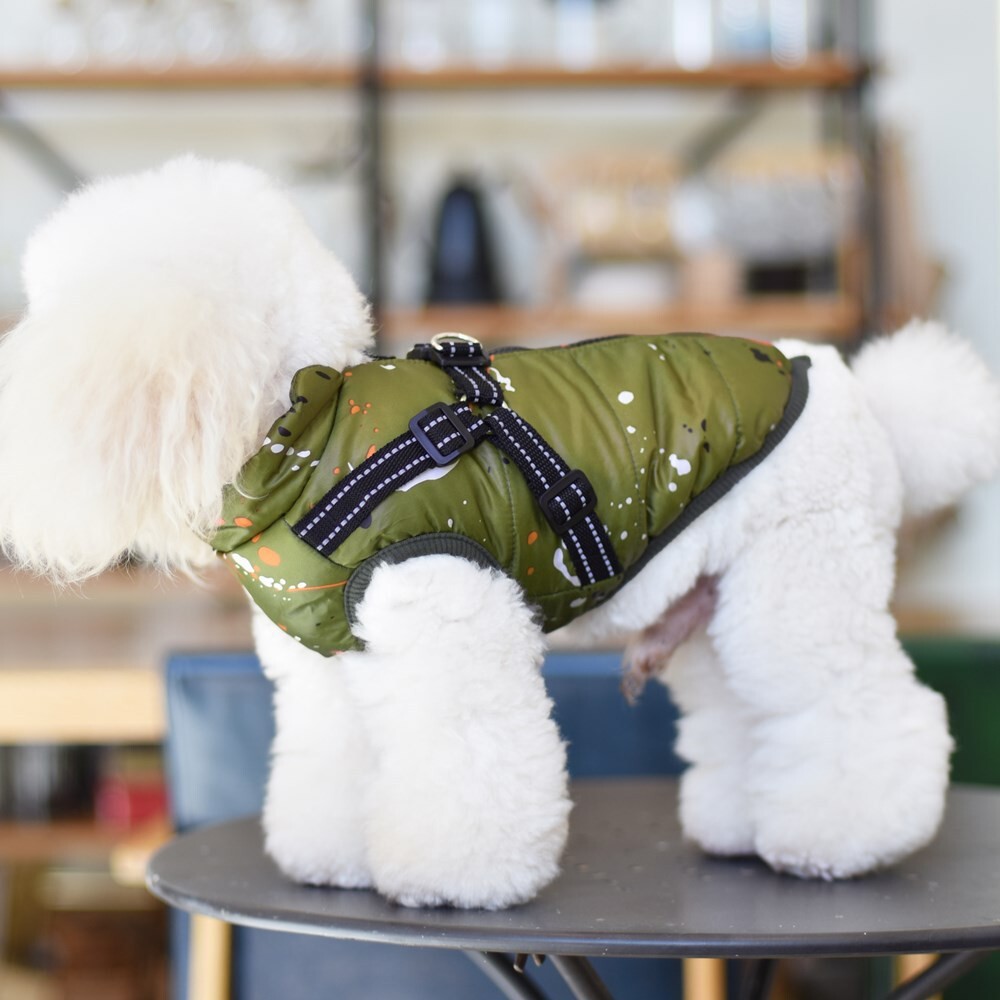 犬服 ペイント柄 裏ボアダウン風ベスト