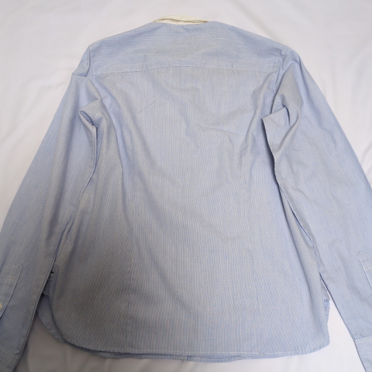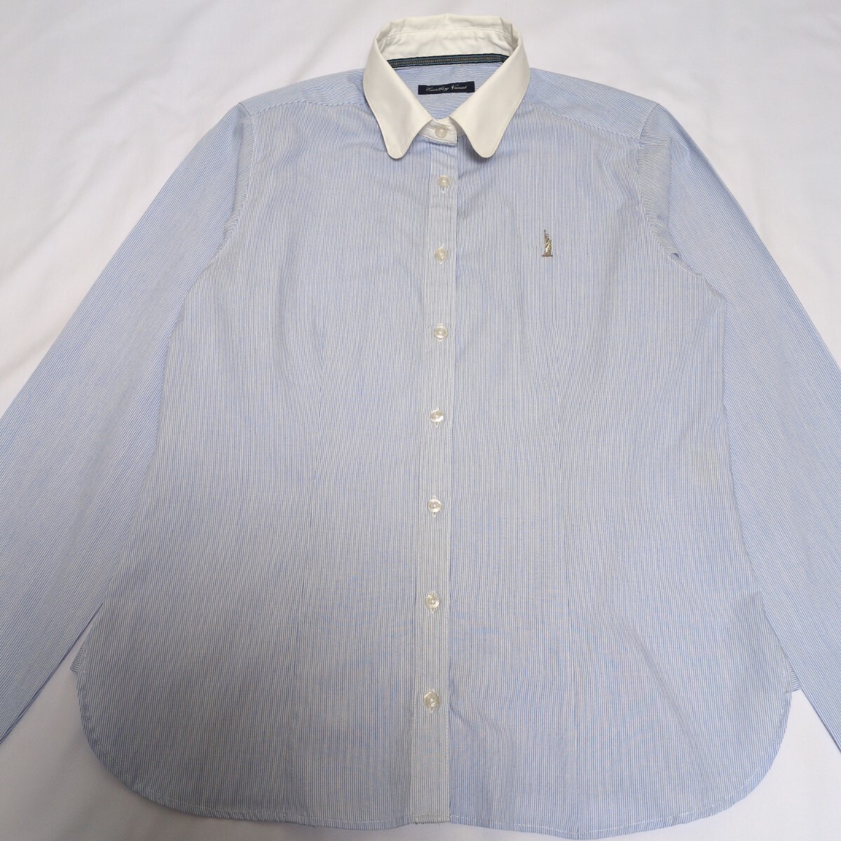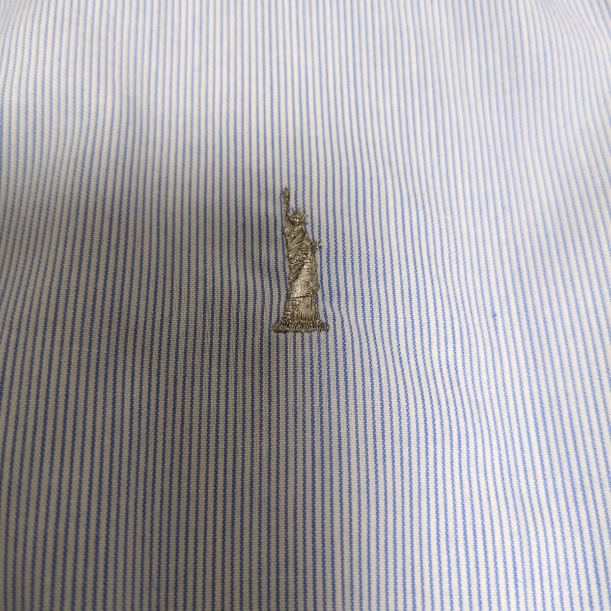 青と白のストライプに自由の女神刺繍の長袖シャツ。