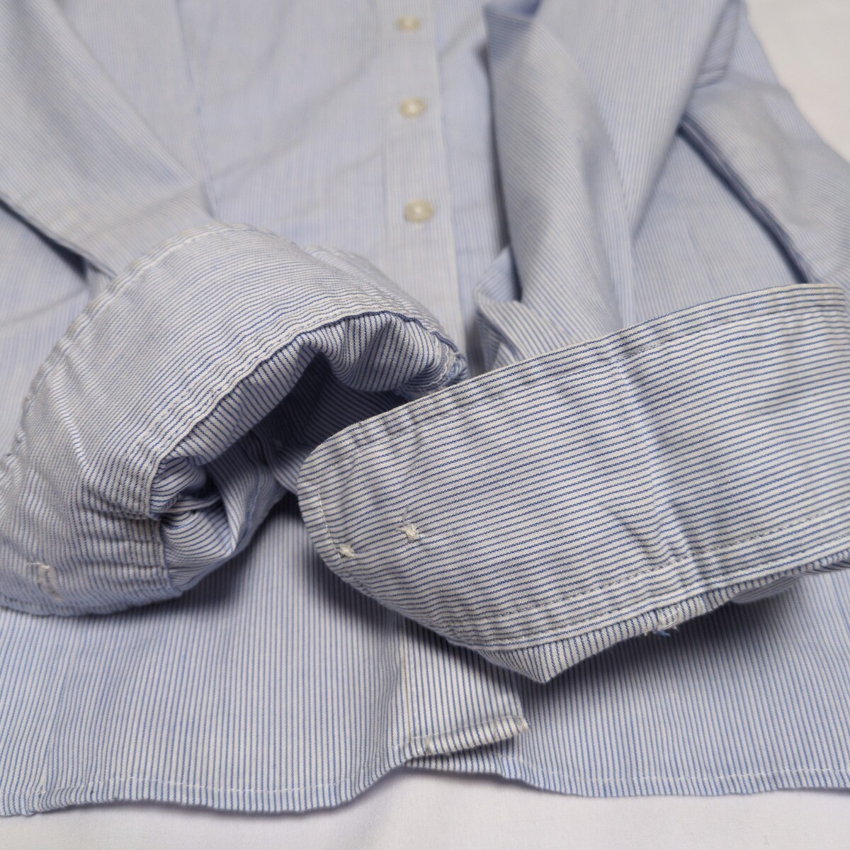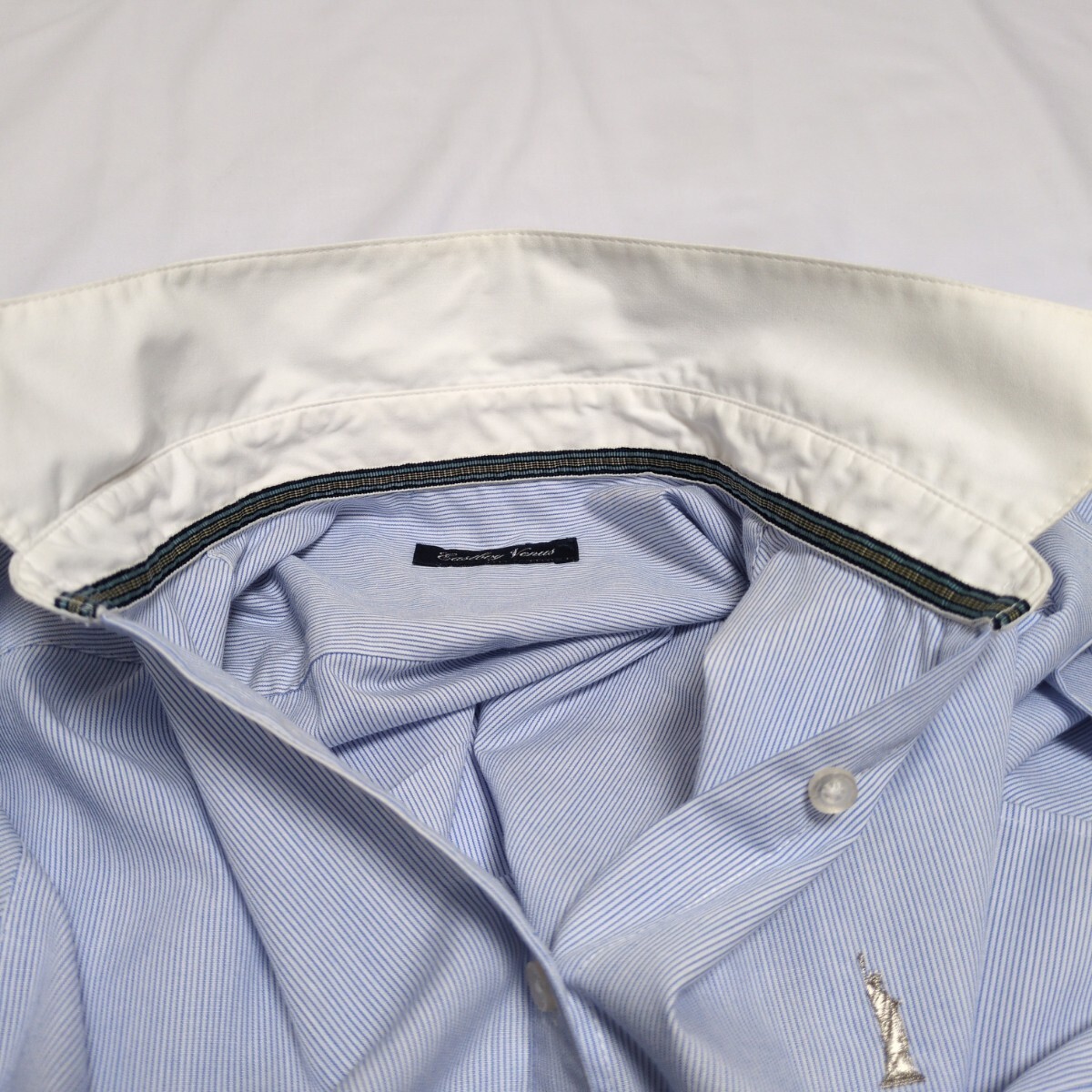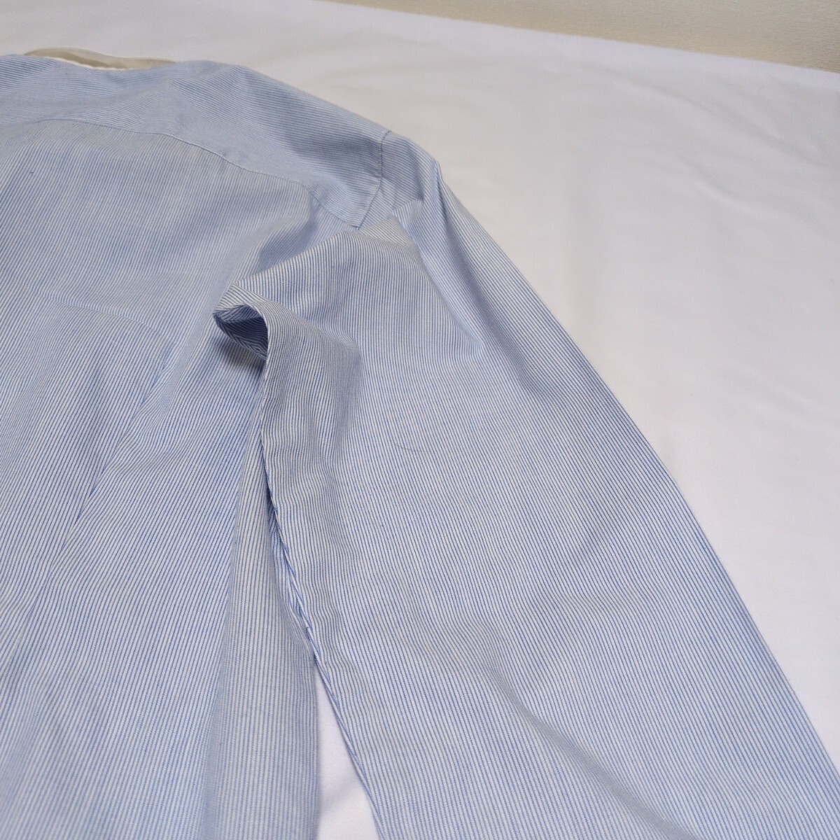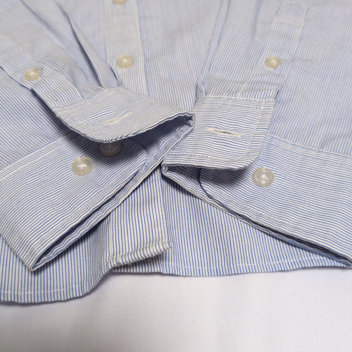 青と白のストライプに自由の女神刺繍の長袖シャツ。