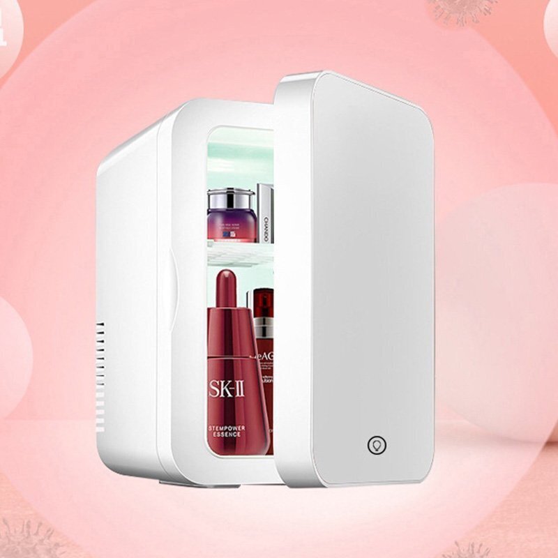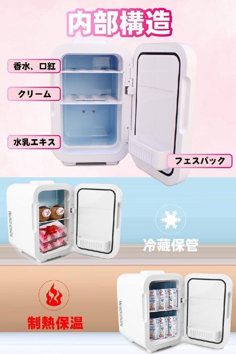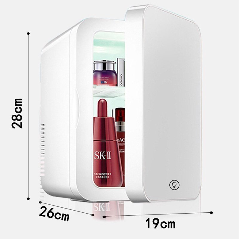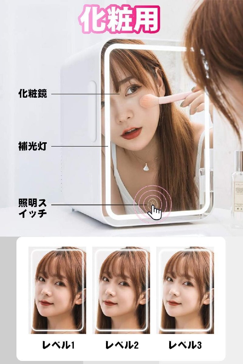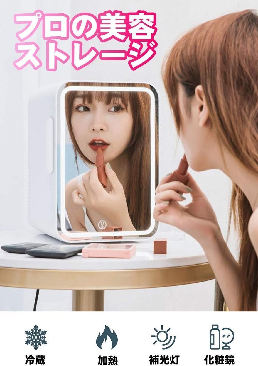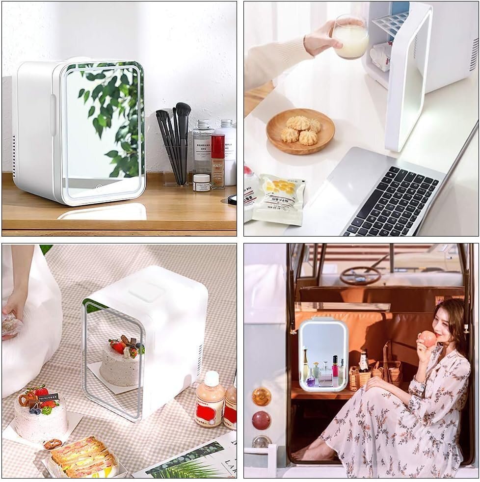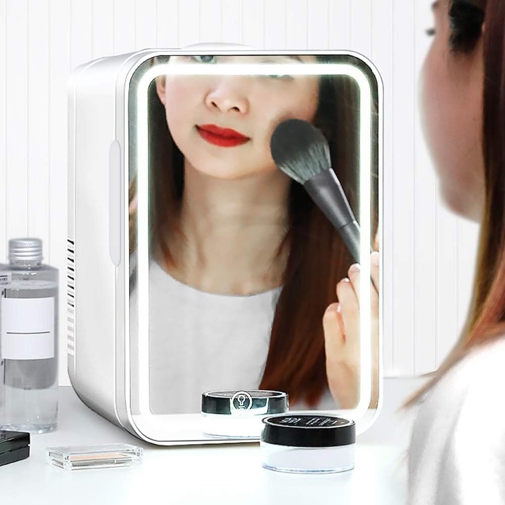 8L 化粧品冷蔵庫 -2℃~60℃ ポータブル冷蔵庫 車載用家用 小型 LEDライト ミラー タッチ式明るさ調整 メイク 静音 DC12V/AC110V ホワイト