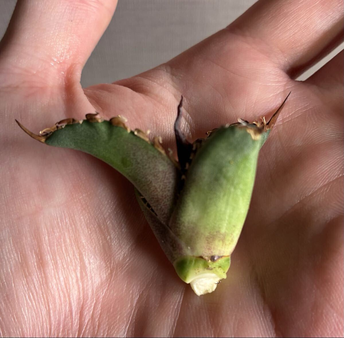 LatebloomingさんのDennis020の子株を育成していましたが親の成長点が死んでしまい横からはみ出た子株になります。写真1-3が出品子株になります。4は育てていた親株です。抜き苗で発送いたします。