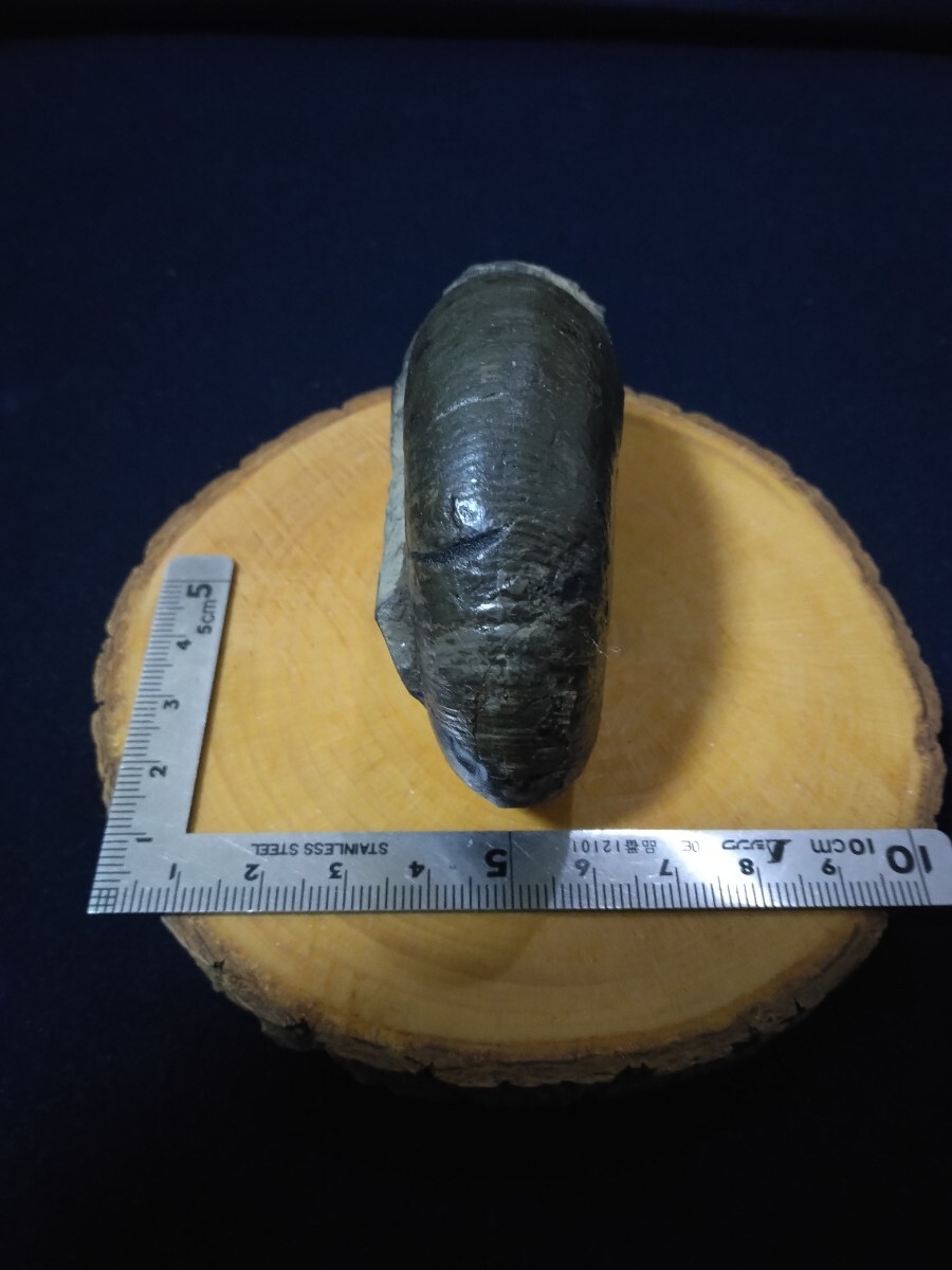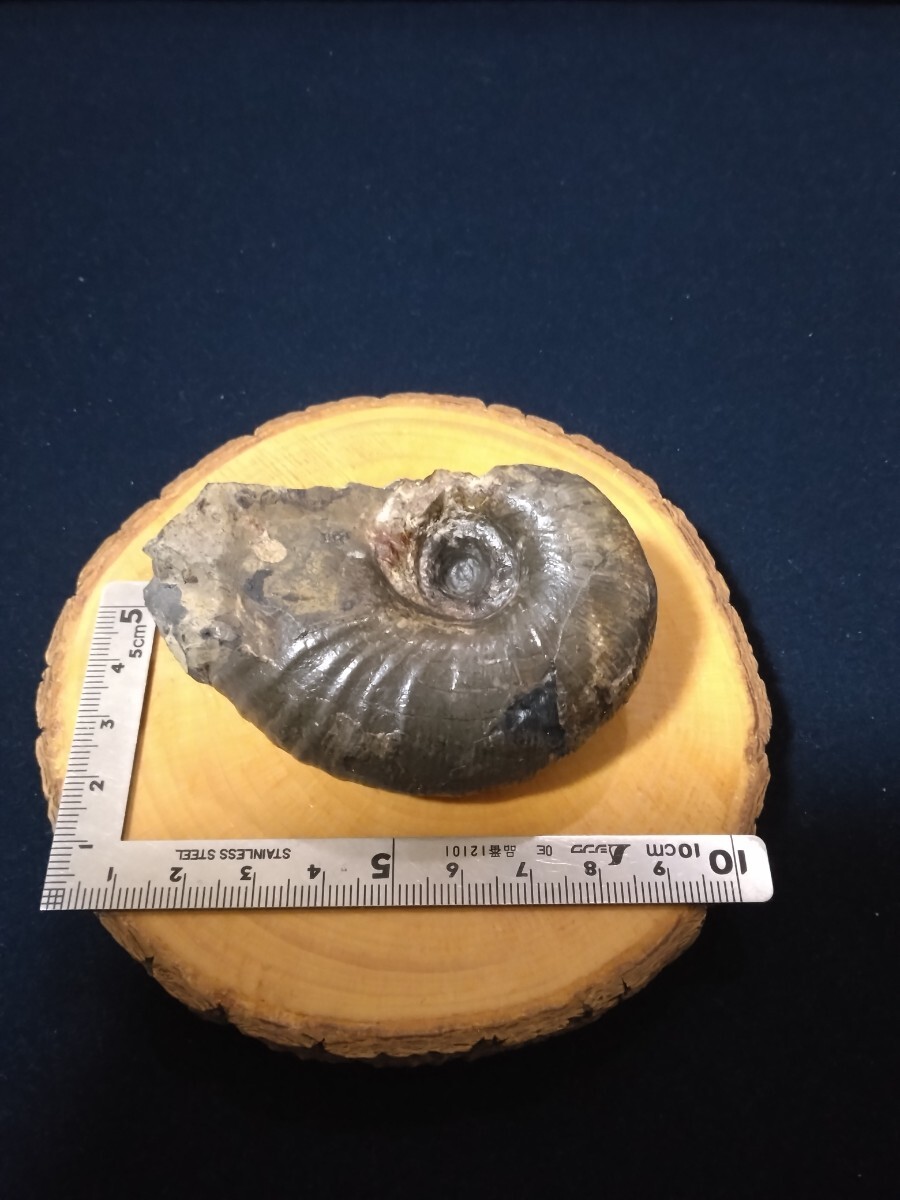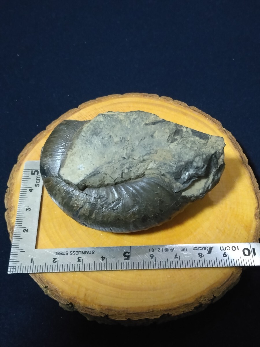 #天然石化石標本 北海道産アンモナイト化石 アンモナイトの大きさ約80㎜X45㎜ 最大厚さ約26㎜ 重量約147.8g。北海道産[詳細な産地は不明。] 補修あり。撮影に使用したL尺、丸敷板は付属しません。アンモナイト化石のみの出品になります。天然石の為、歪み、ヒビ、欠けが見られます。配送は、郵パック発送になります。