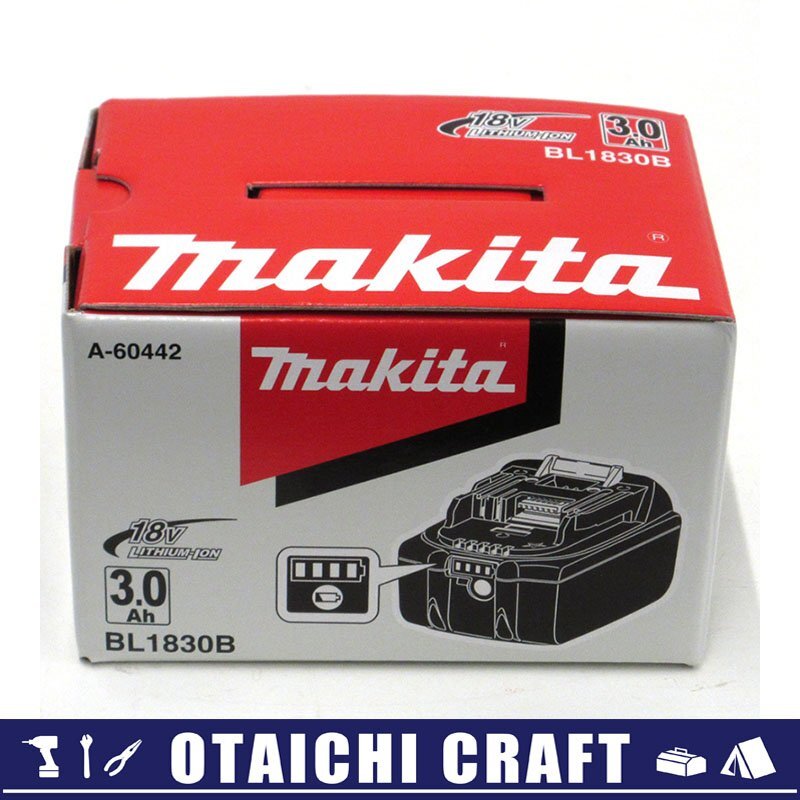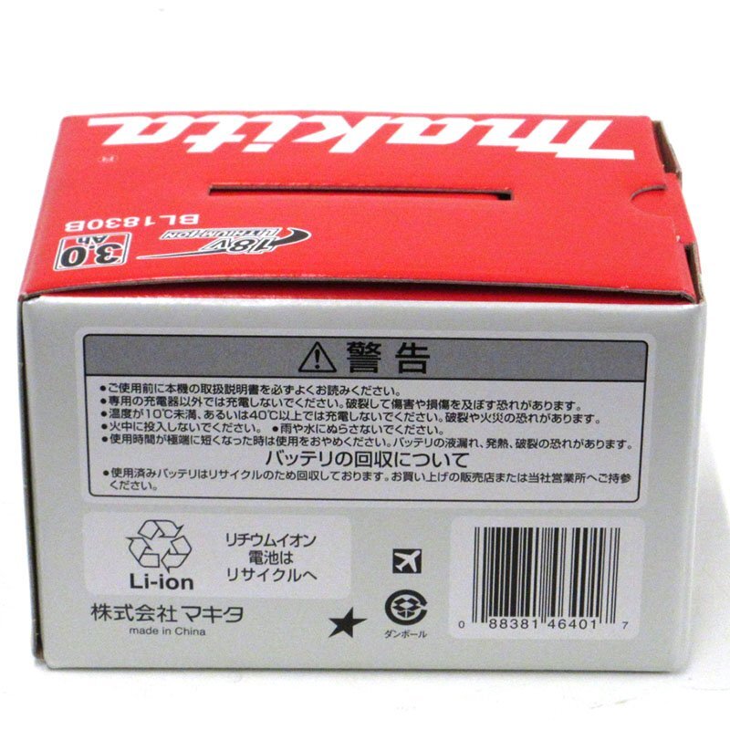 【未使用】makita(マキタ) 純正 18V リチウムイオンバッテリー BL1830B 3.0Ah 残量表示機能付 A-60442【/D20179900056027D/】