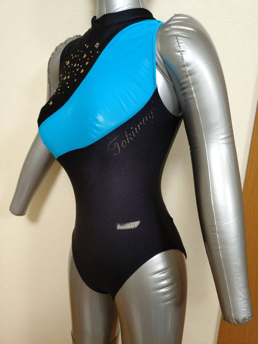常盤木 エアムーブ 女子器械体操 レオタード 黒/水色ラメ サイズS