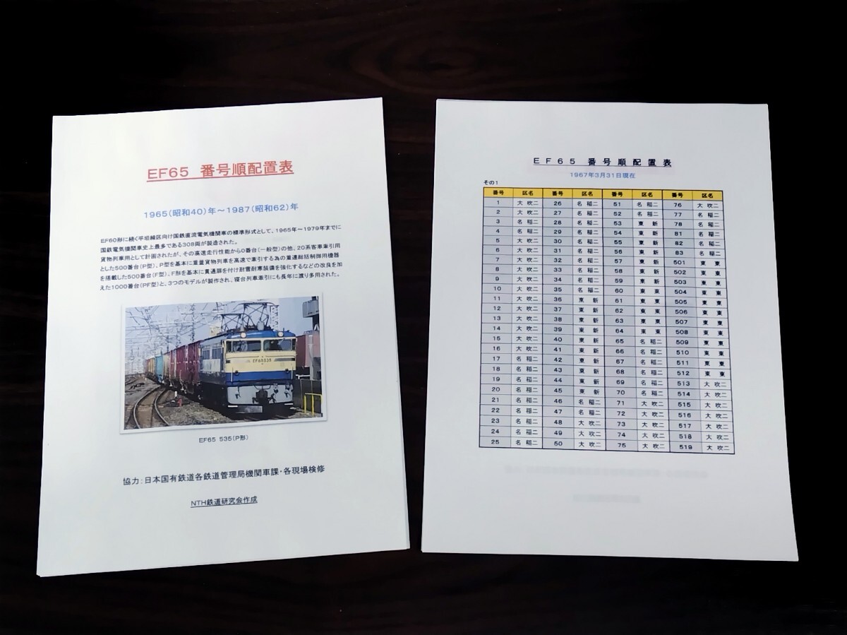 全国に配置された 直流電気機関車EF65 を番号順に並べた配置表。