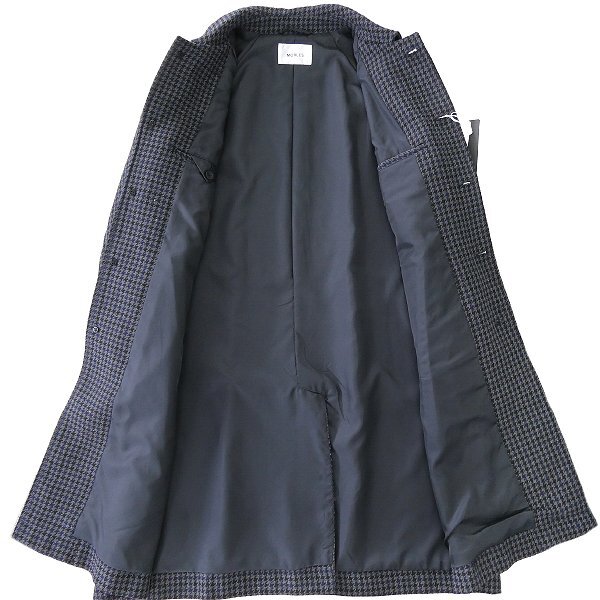 【MORLES(モアレス)】 ビジネスカジュアルブランドとしてBEAMSのコラボレートレーベル『BEAMSdesign』が企画監修。 ON寄りのOFFなのか、OFF寄りのONなのか、その境界をあいまいにすることで自分らしさを楽しむ「FRENCH IVY」というスタイルを提案しています。 太番手のポリエステルスパン糸を使用し、ウール混のツイード素材でしっかりとした生地感に仕上げたステンカラーコートです。 ざっくりとした厚手の生地に、ブリティッシュなガンクラブを採用。 絶妙な着丈、シルエットに設定したON・OFF共に着用可応な汎用性の高いコートです。 【デザイン】 ・フロントは5つボタン ・総裏地 ・センターベント |