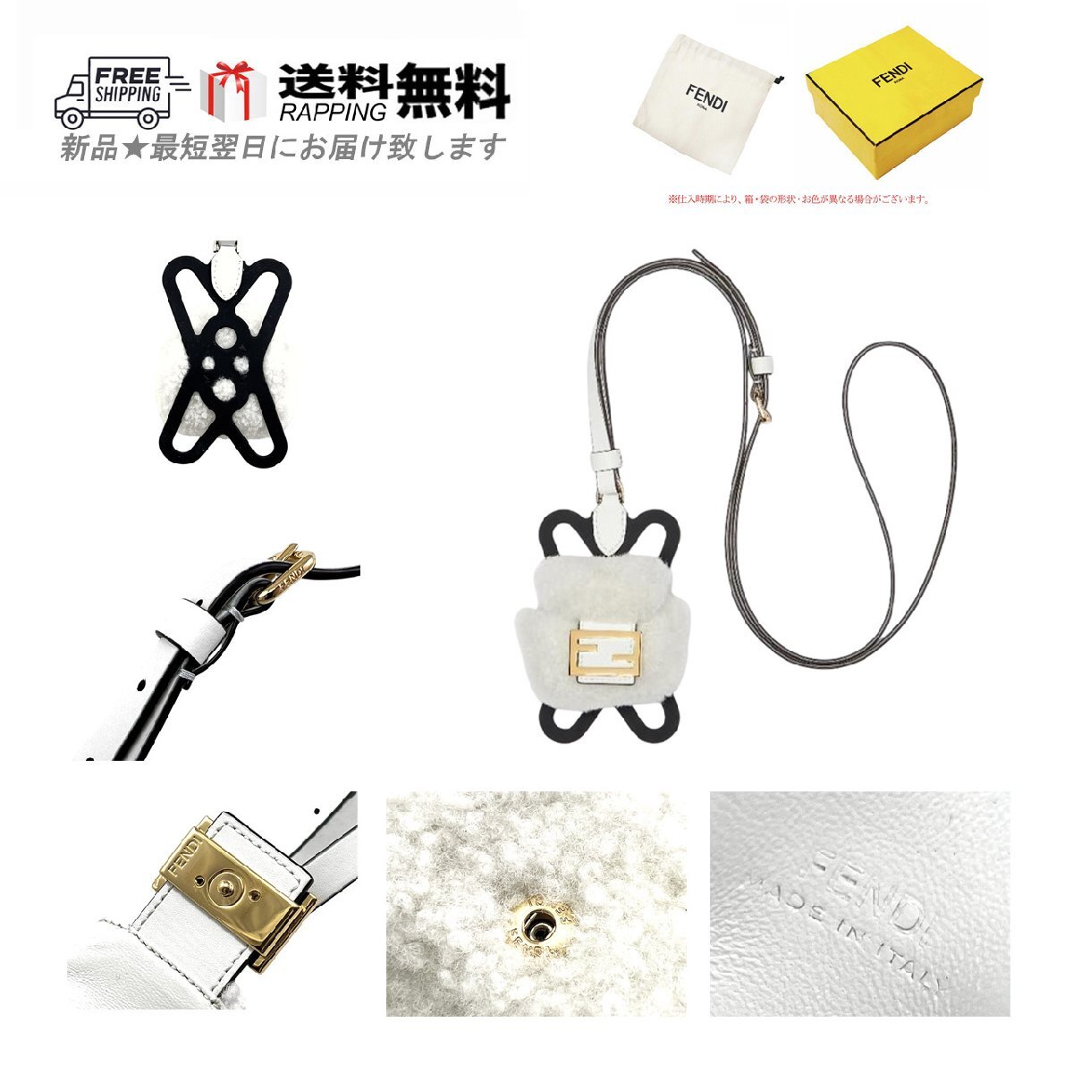 # 新品 未使用 正規店 本物 送料無料 男 男性 MENS メンズ 女 女性 レディース LADIES プレゼント PRESENT イタリア製 ITALY ユニセックス ロゴ LOGO ホワイト 白 WHITE スマホ ケース FF シープスキン ラバー フリーサイズ ストラップ