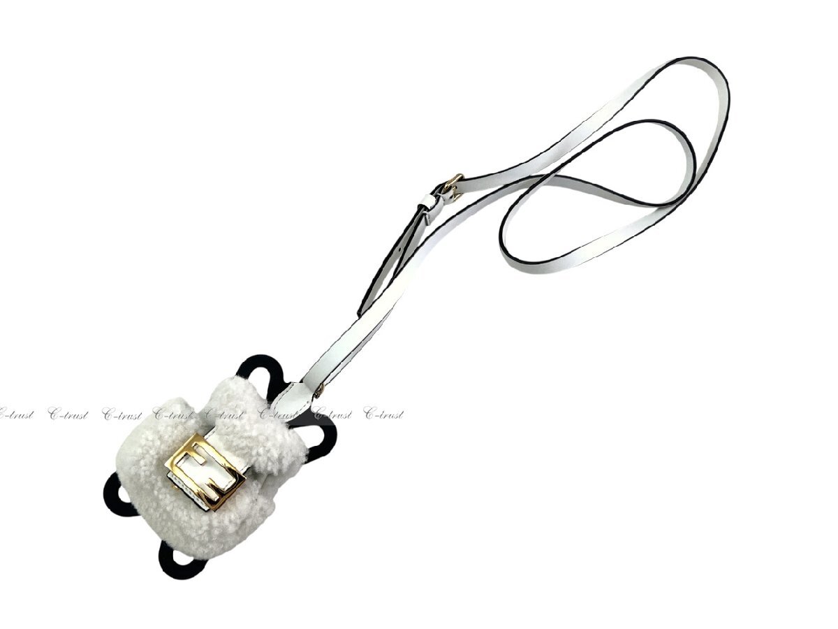 L724.. FENDI フェンディ スマホ ケース FF シープスキン ラバー フリーサイズ ストラップ 7AS221AQ1DF0QVL ★ ホワイト