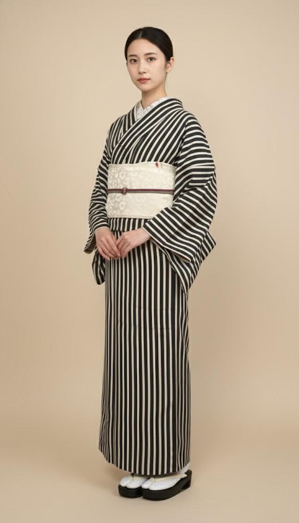 黒や紺、濃色の着物に合わせれば、帯の白さが際立ち、シャープで美しいコントラストを生み出す帯に。