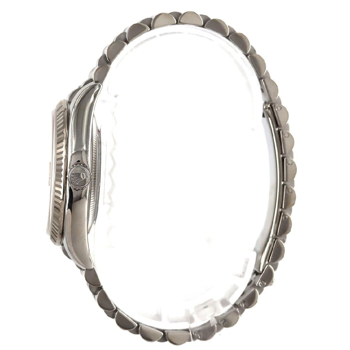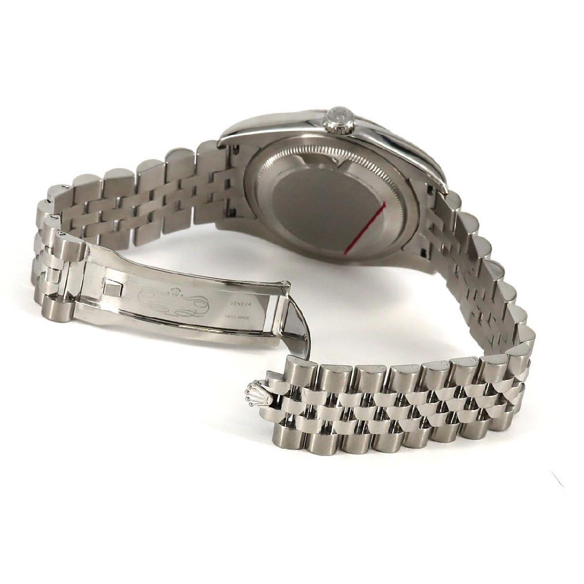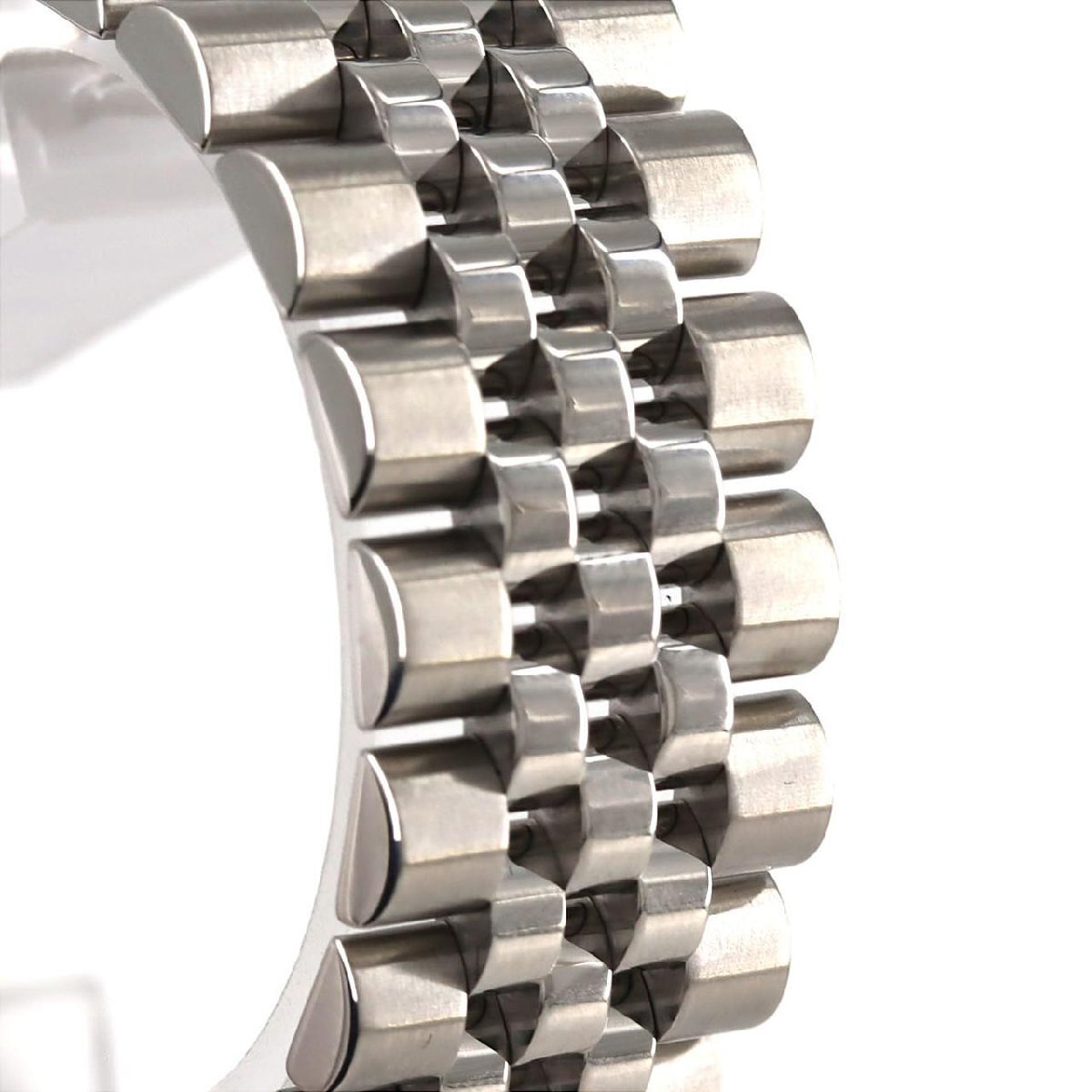 1945年に登場して以来、ロレックス伝統のモデルとして存在する「デイトジャスト」。防水ケース・自動巻ムーブメント・日付表示機能を備えており、まさに時計史に残る実用高級時計の金字塔モデルです。その中でもこちらはホワイトゴールド製のベゼルとステンレスと組み合わせたモデル。一世代前モデルの16234ではヘアライン仕上げとなっていたケース表面部分は鏡面仕上げへと変わり、より光沢感のあるモデルになりました。また、ブレスレットは空洞のあるタイプから無垢タイプへと変わり、重厚感も増しています。