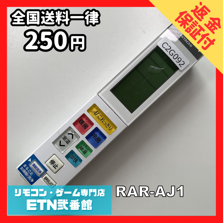 C2G092 【送料250円】エアコン リモコン / 日立 ヒタチ HITACHI RAR-AJ1 冷房 暖房 動作確認済み★即発送★